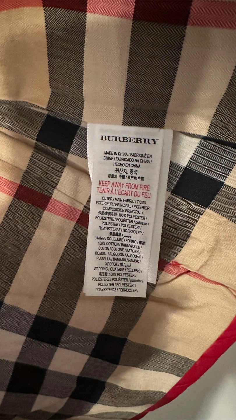 I'm selling a cute Burberry Children's quilted jacket in size 3Y. It's a vibrant red colour and features the classic Burberry check pattern on the lining. The jacket is made of 100% polyester. Perfect for keeping your little one warm and stylish!