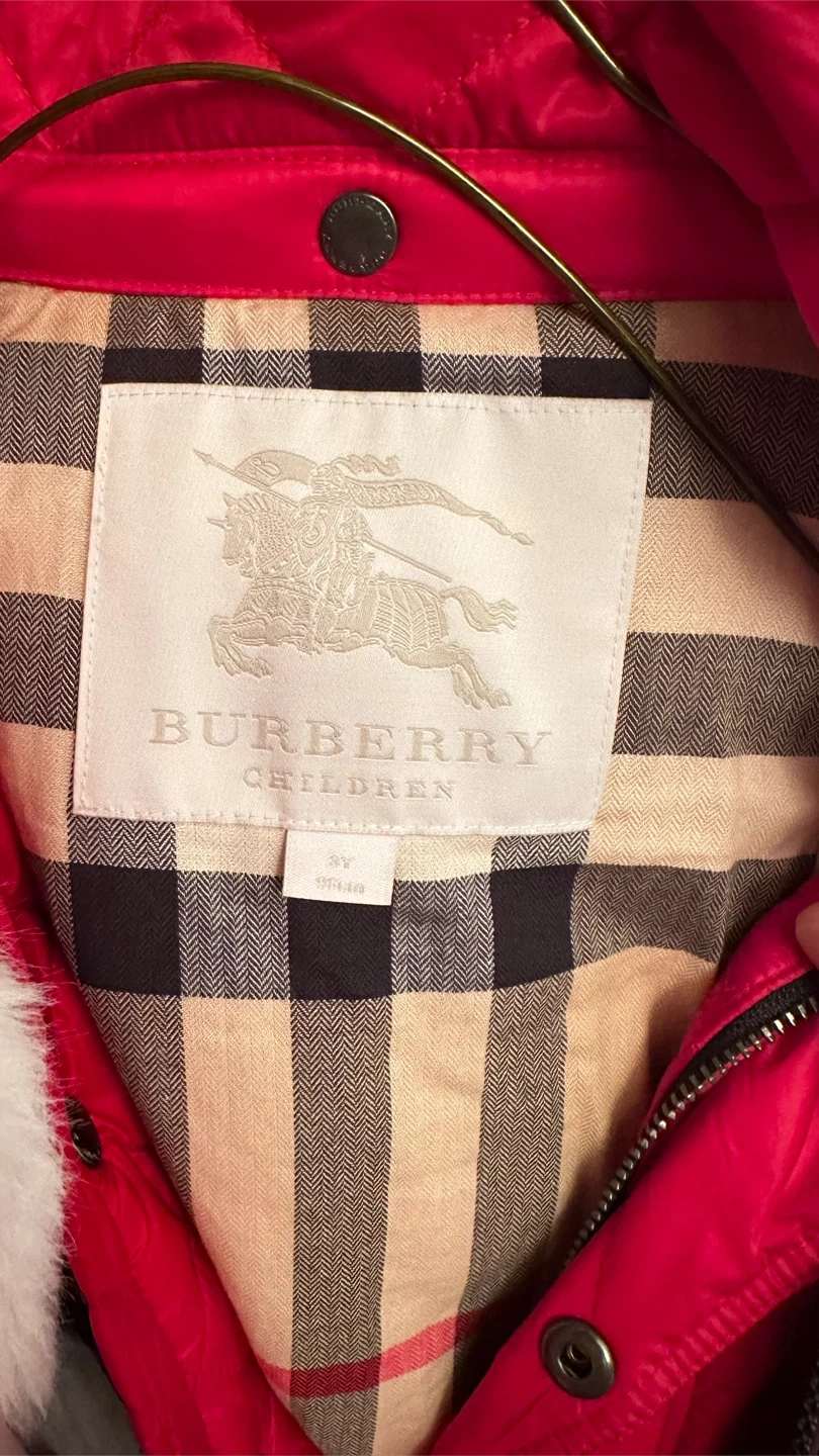 Burberry Children's Red Quilted Jacket - Size 3Y