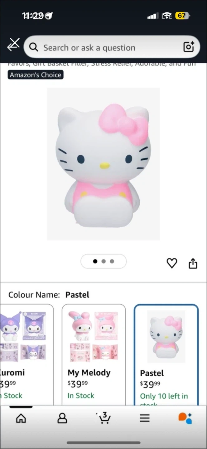 This is a Hello Kitty squishy toy in a pastel colour. It's designed for stress relief and is a fun collectible. Great for kids and adults who love Sanrio characters! Pick up cash only