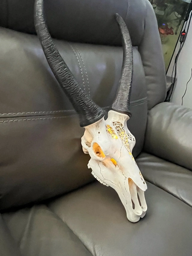 Carved Faux Springbok Antelope Skull with LED Backlight
