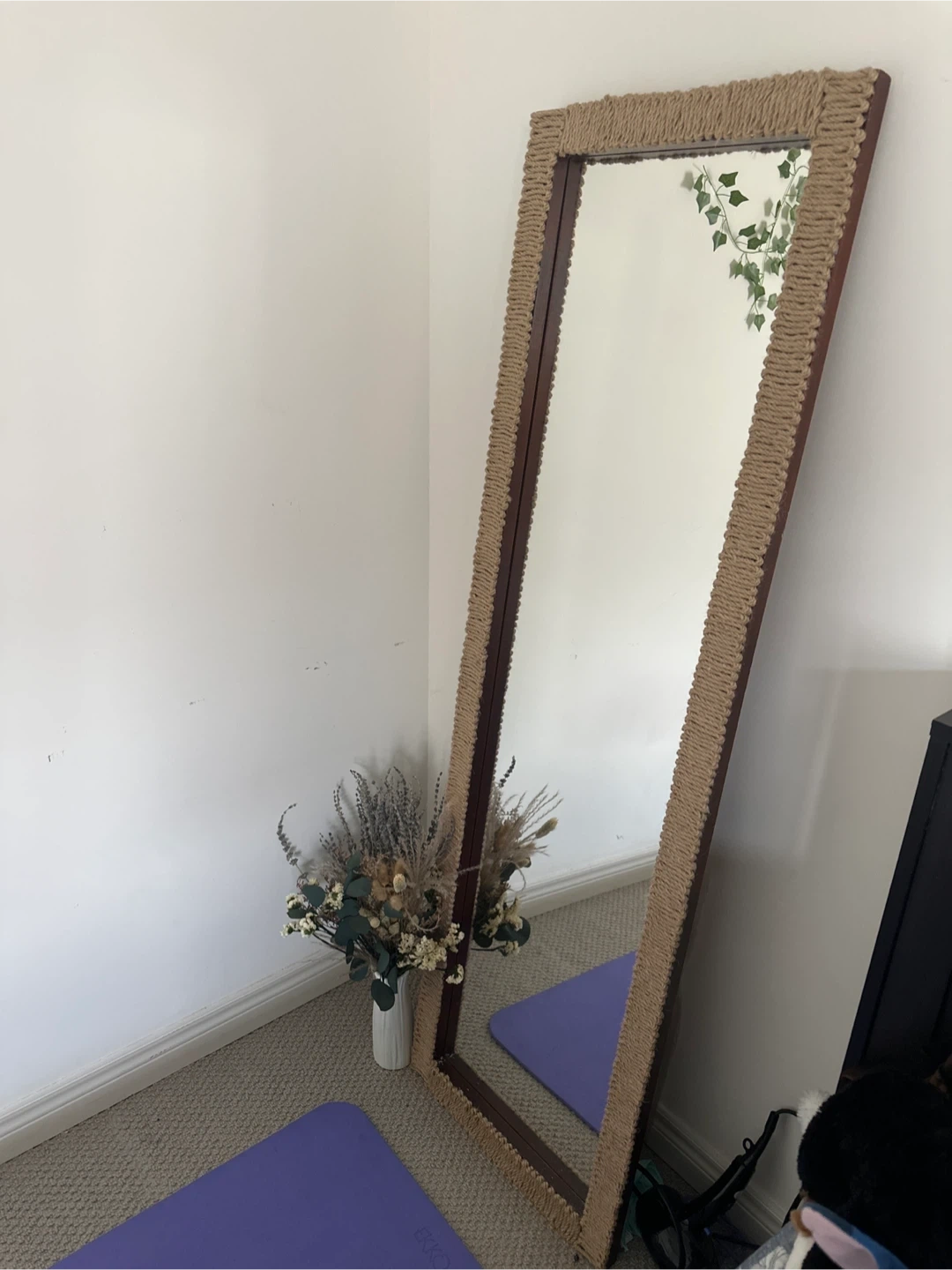 Selling a full-length mirror with a rattan trim! It's in great condition and would look lovely in any room. The mirror is perfect for checking out your outfit or just adding some style to your space