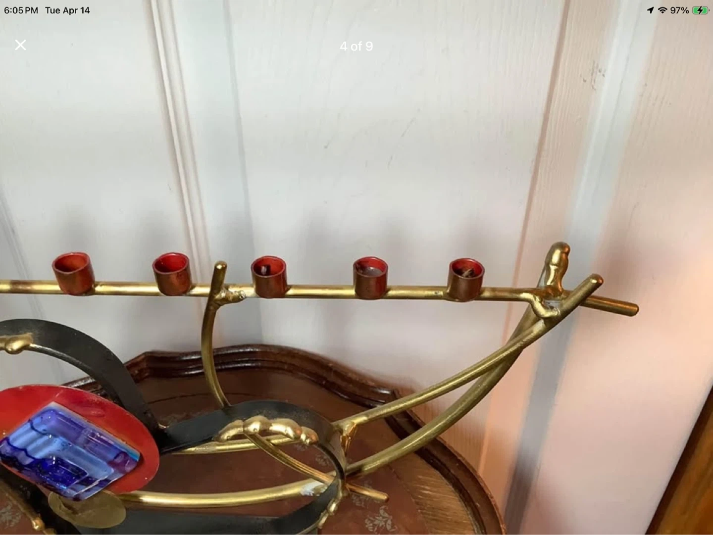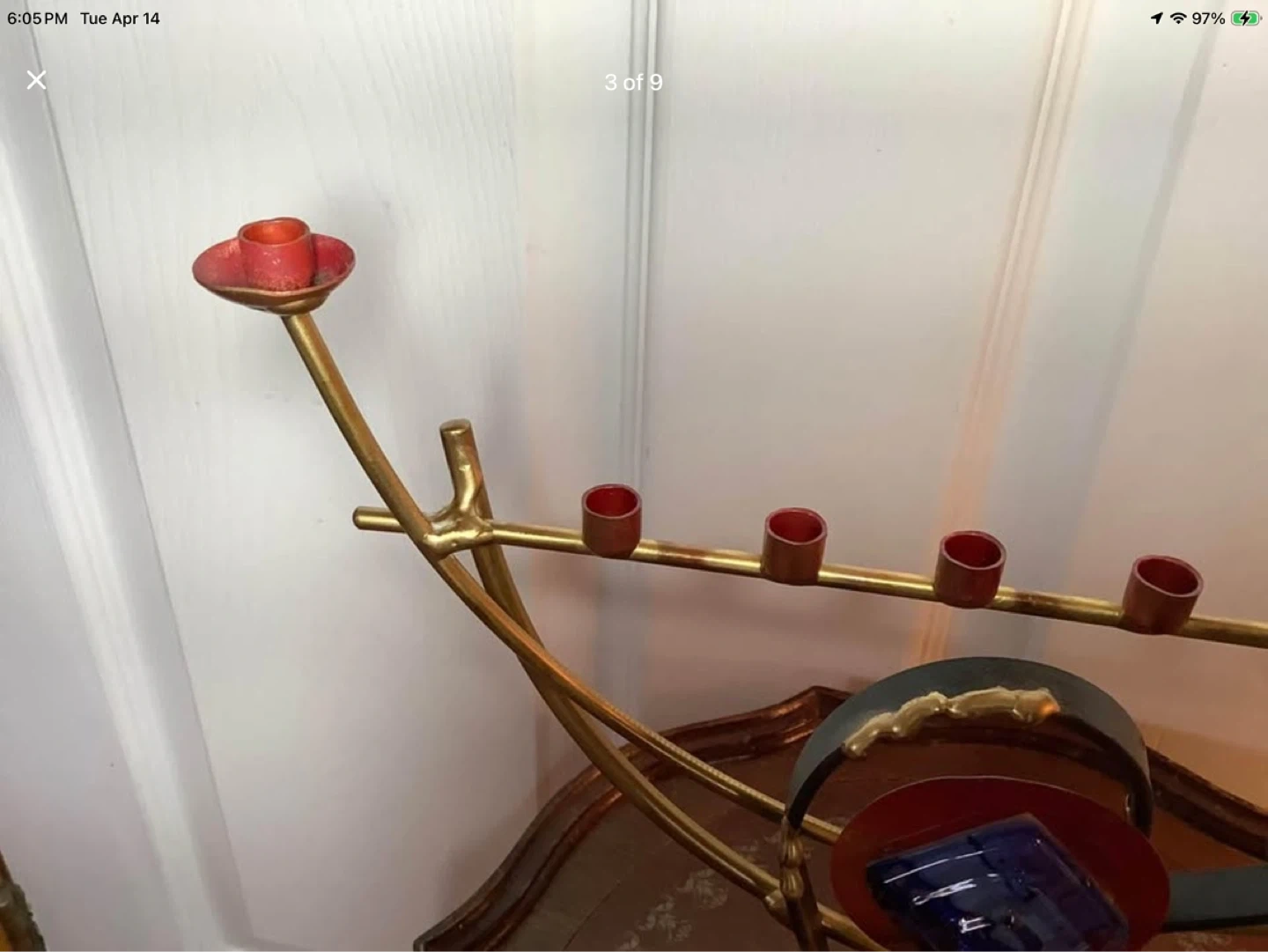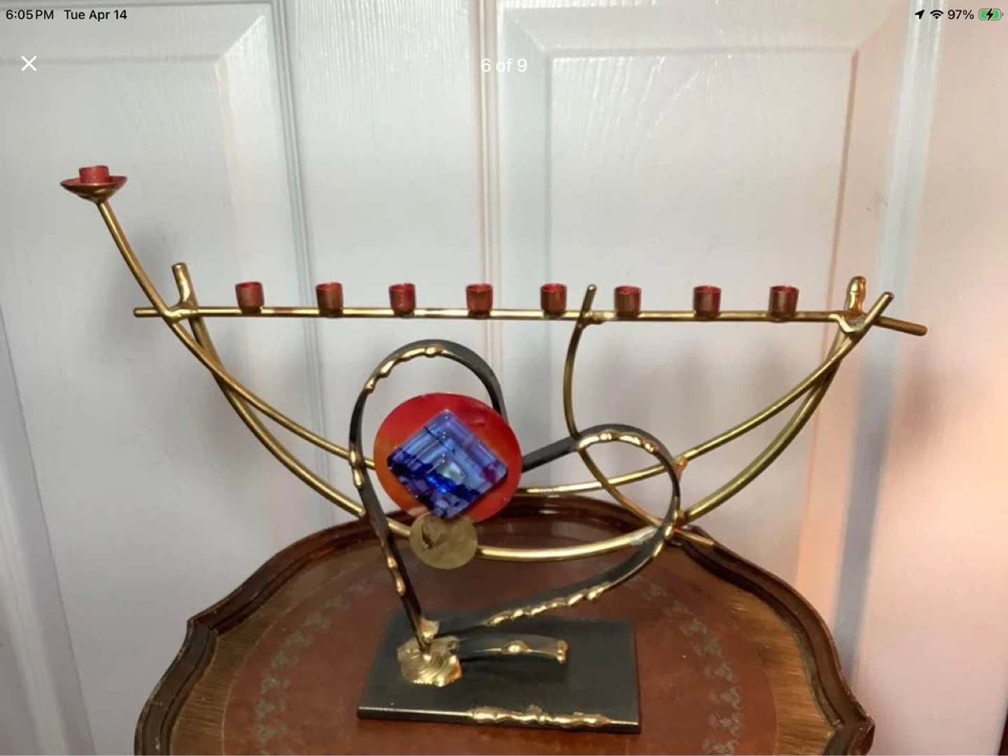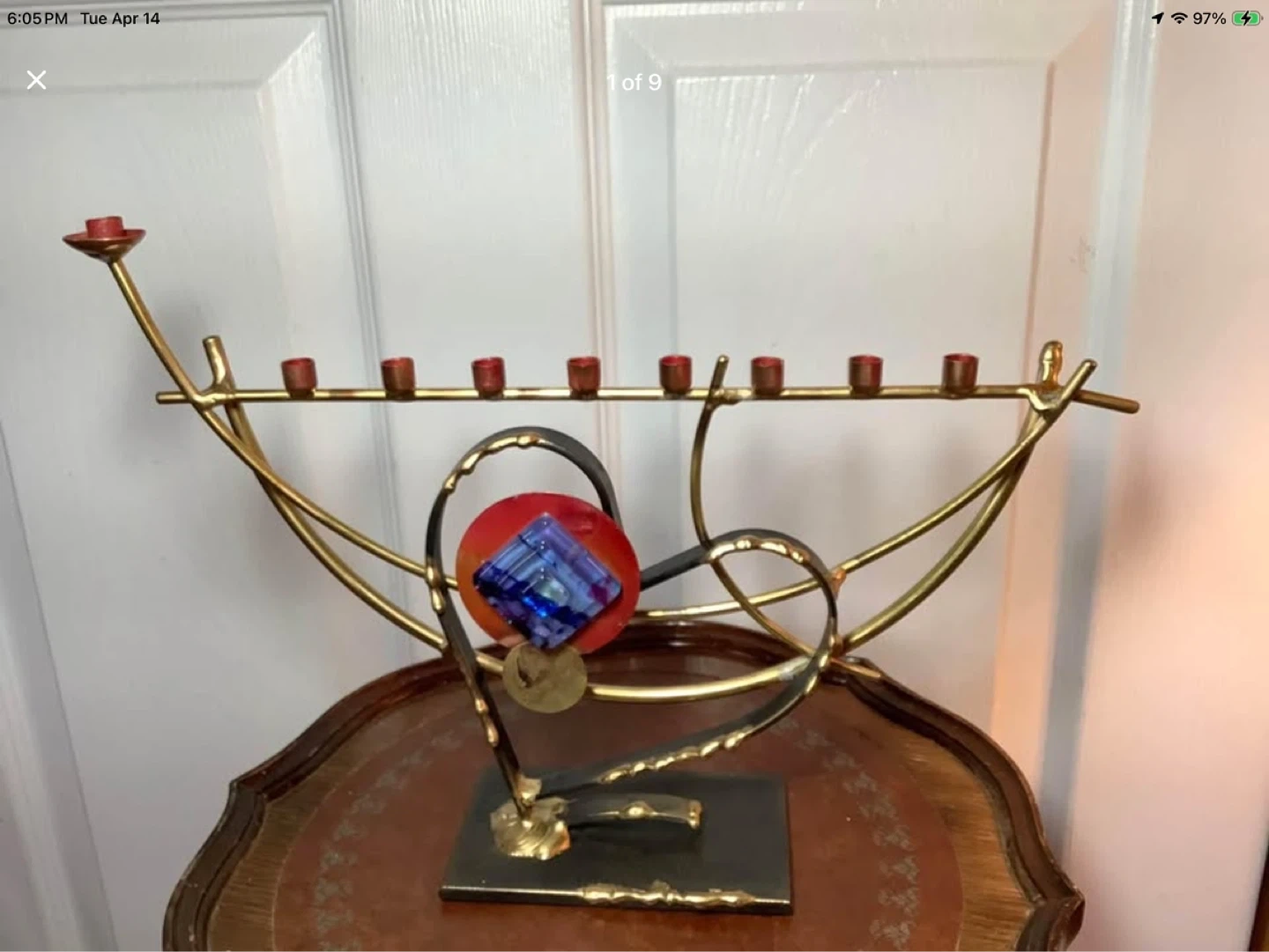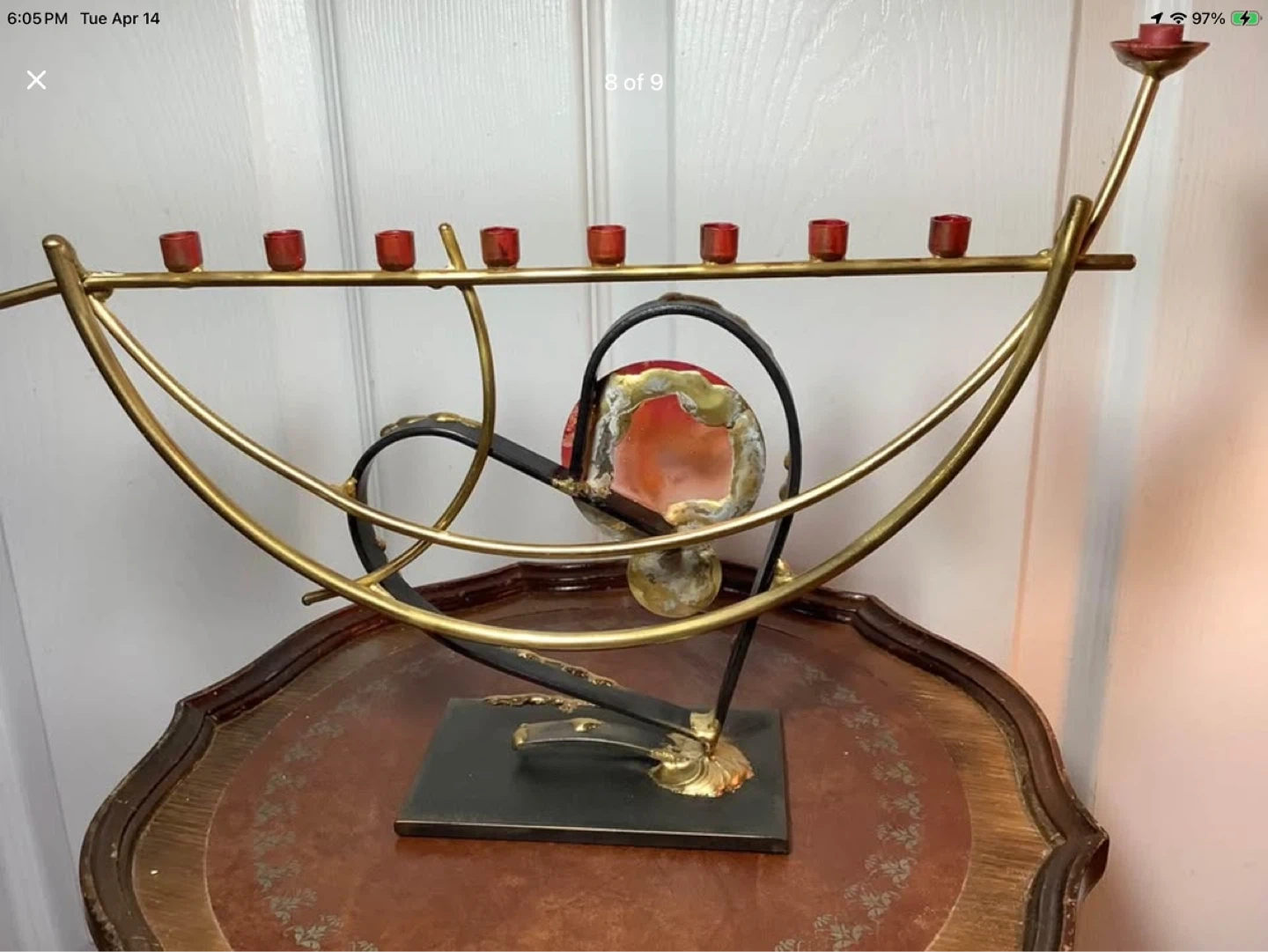 Beautiful contemporary heart wedding menorah in a Gary Rosenthal style.