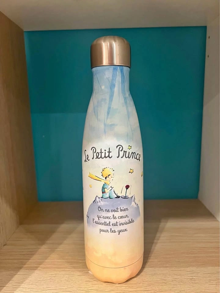 Beautiful eco-friendly stainless steel bottle featuring Le Petit Prince artwork. BPA-free, double-walled, perfect for both hot and cold drinks — practical and collectible!