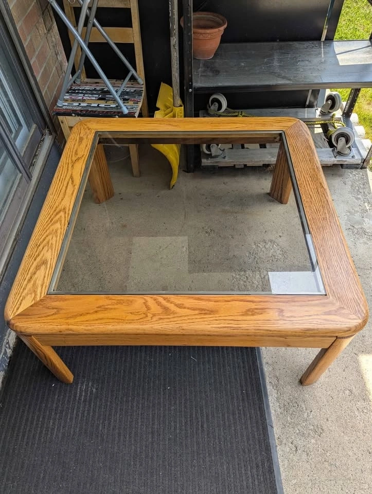 Refurbished Wood Coffee Table w/ Glass Top - 36"x36"