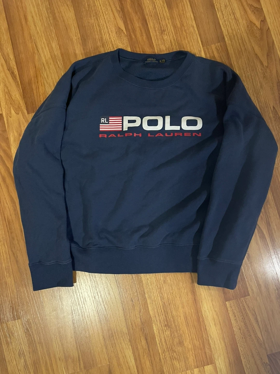 Polo Ralph Lauren sweatshirt in navy blue featuring a Polo Ralph Lauren logo in red and white. Super comfy and great condition.