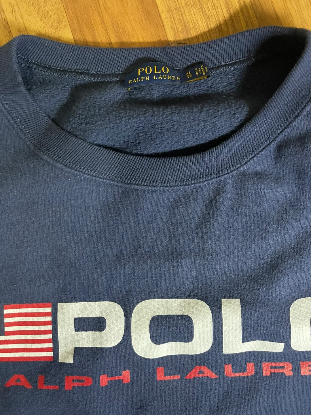 Polo Ralph Lauren sweatshirt in navy blue featuring a Polo Ralph Lauren logo in red and white. Super comfy and great condition.