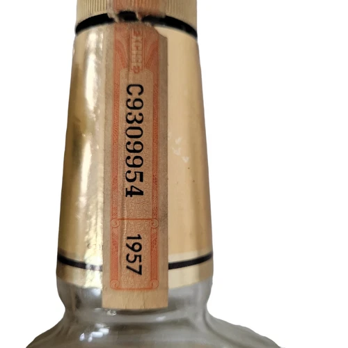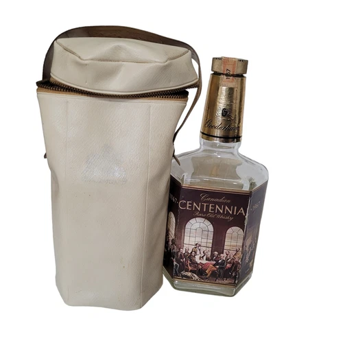 1957 Gooderham's & Worts Canadian Whiskey Bottle Centennial Hexagon shaped + Faux Leather Case.