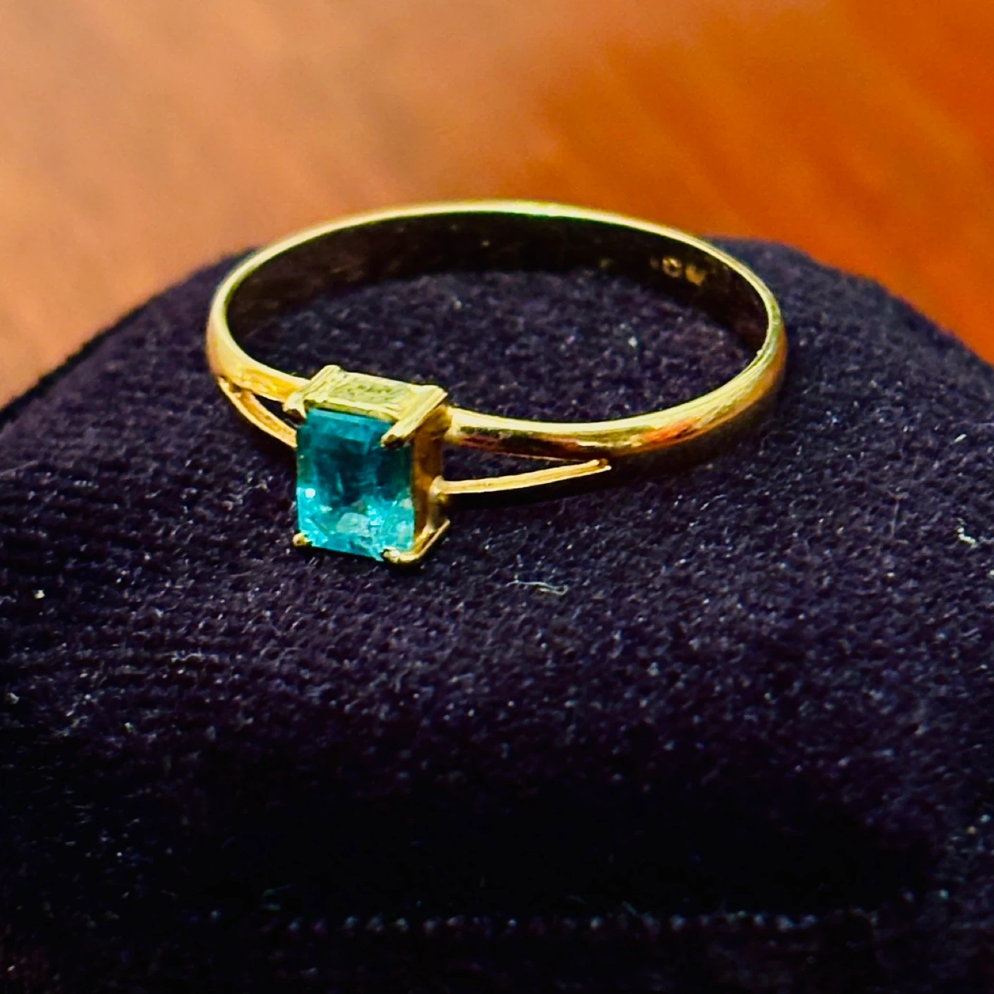 Stunning emerald set in a 10k solid gold ring. It's a lovely accessory for anyone who appreciates unique jewellery with a classic look - great for every occasion. Stamped / hallmarked. Size is 7-7.5, just under 1.4g.
