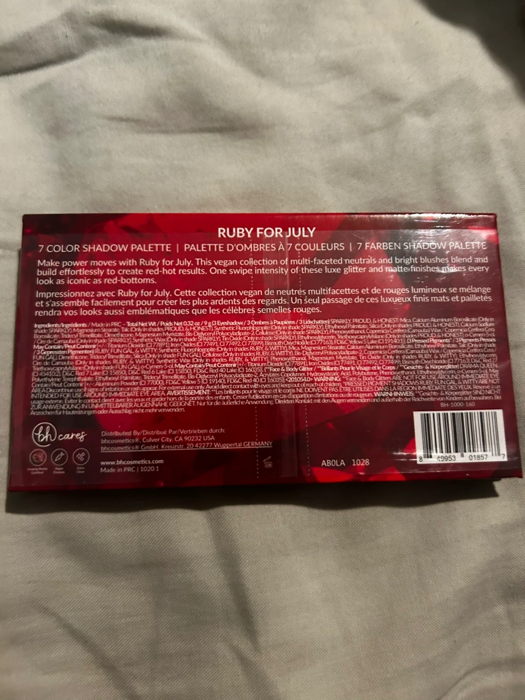 This BH Cosmetics Ruby for July eyeshadow palette features 7 shades of red-toned neutrals and brights. It has a mix of matte and shimmer finishes. Still in silicone wrapping!!
