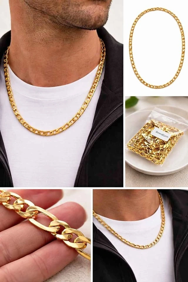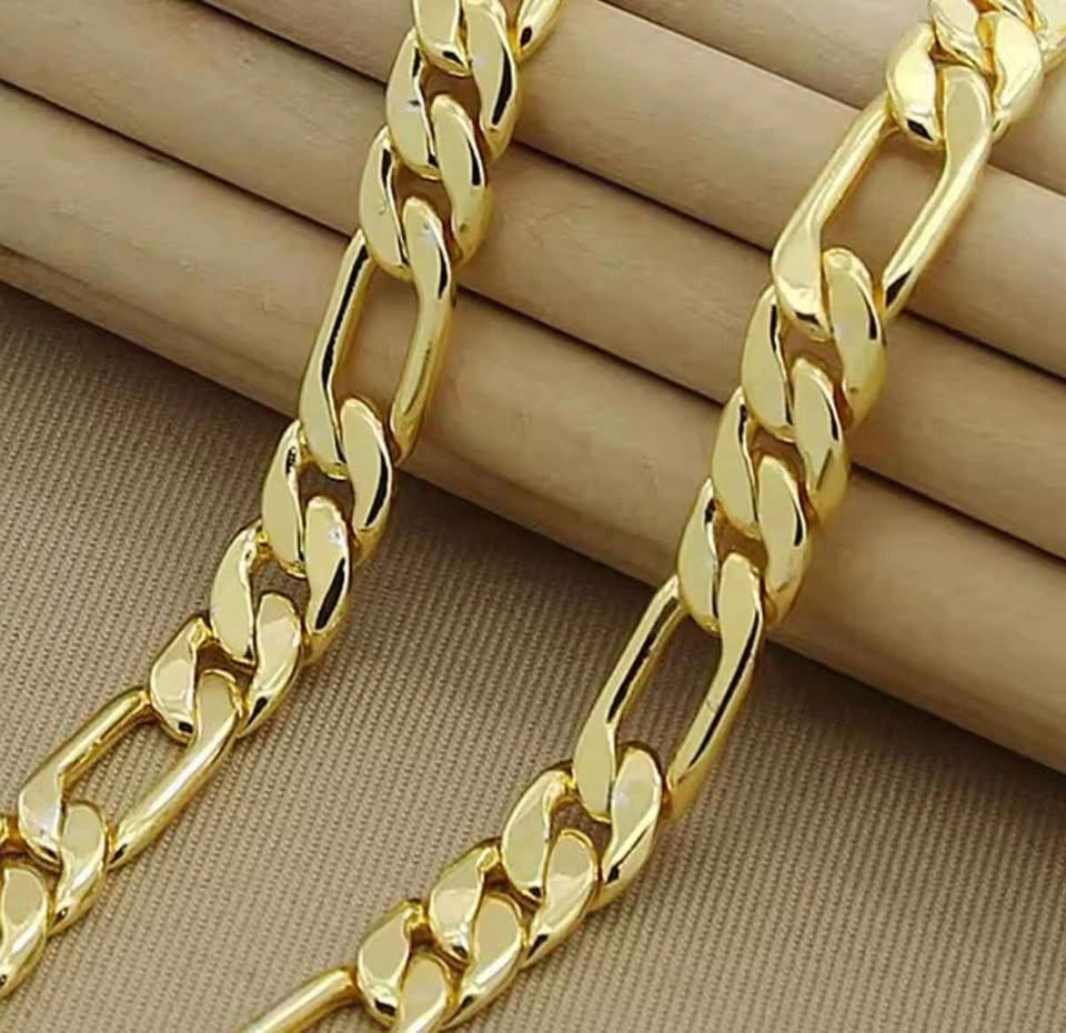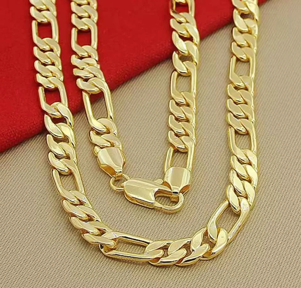 Elevate your style with this bold and elegant Figaro gold chain necklace. Designed with a classic alternating link pattern, this chain delivers a timeless look that works perfectly for everyday wear or special occasions.