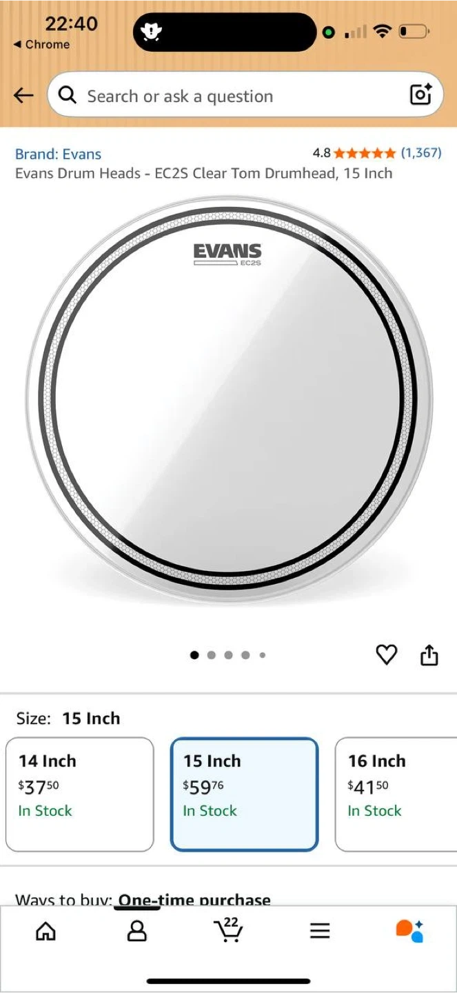 🥁 Evans EC2S Clear SST 15” Drum Head – NEW – $40 ‼️FINAL SALE‼️