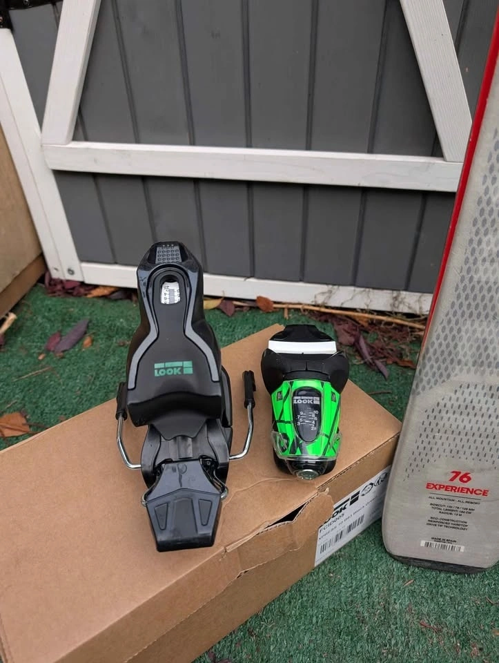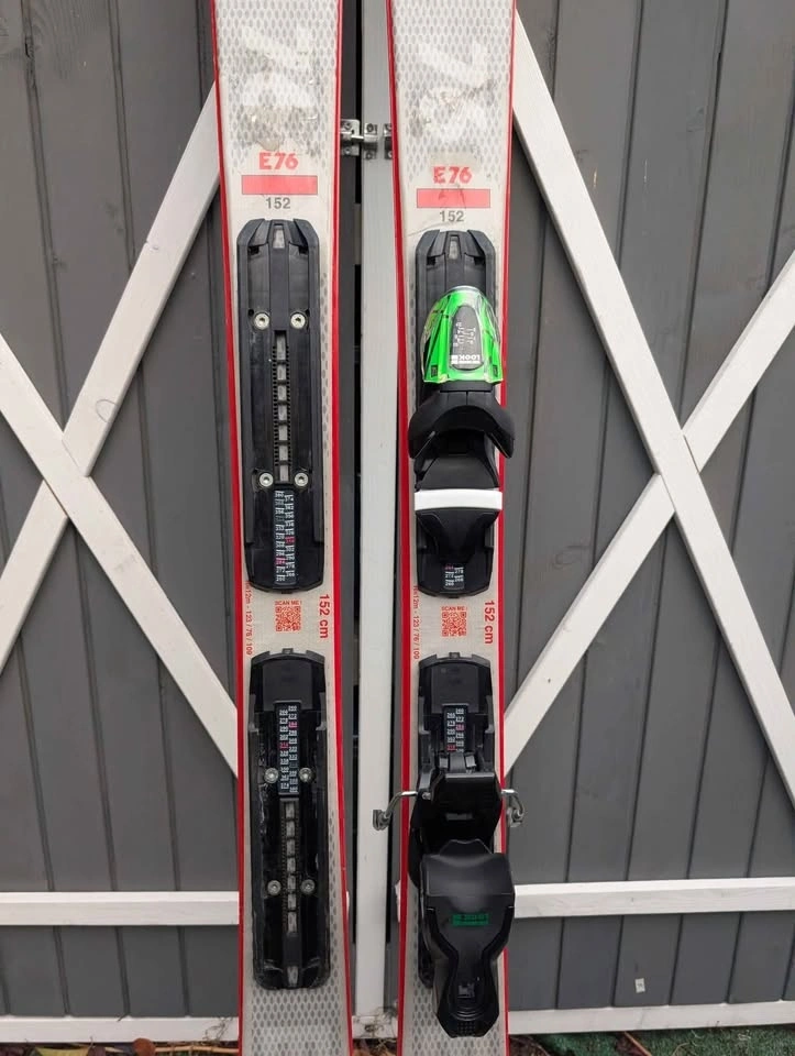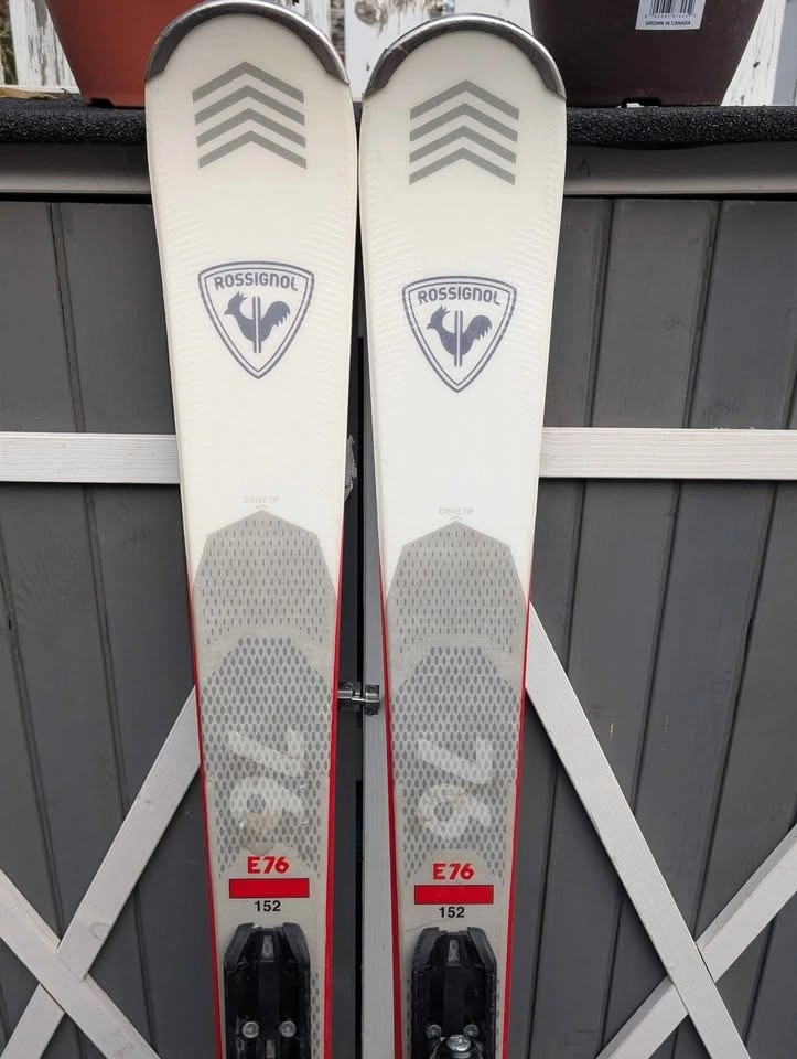 Rossignol E76 / 152cm skis. No issues with skis & bases. NEW - Green Look ski bindings. Atomic 24.5 ski boots - fits size 6-7.
