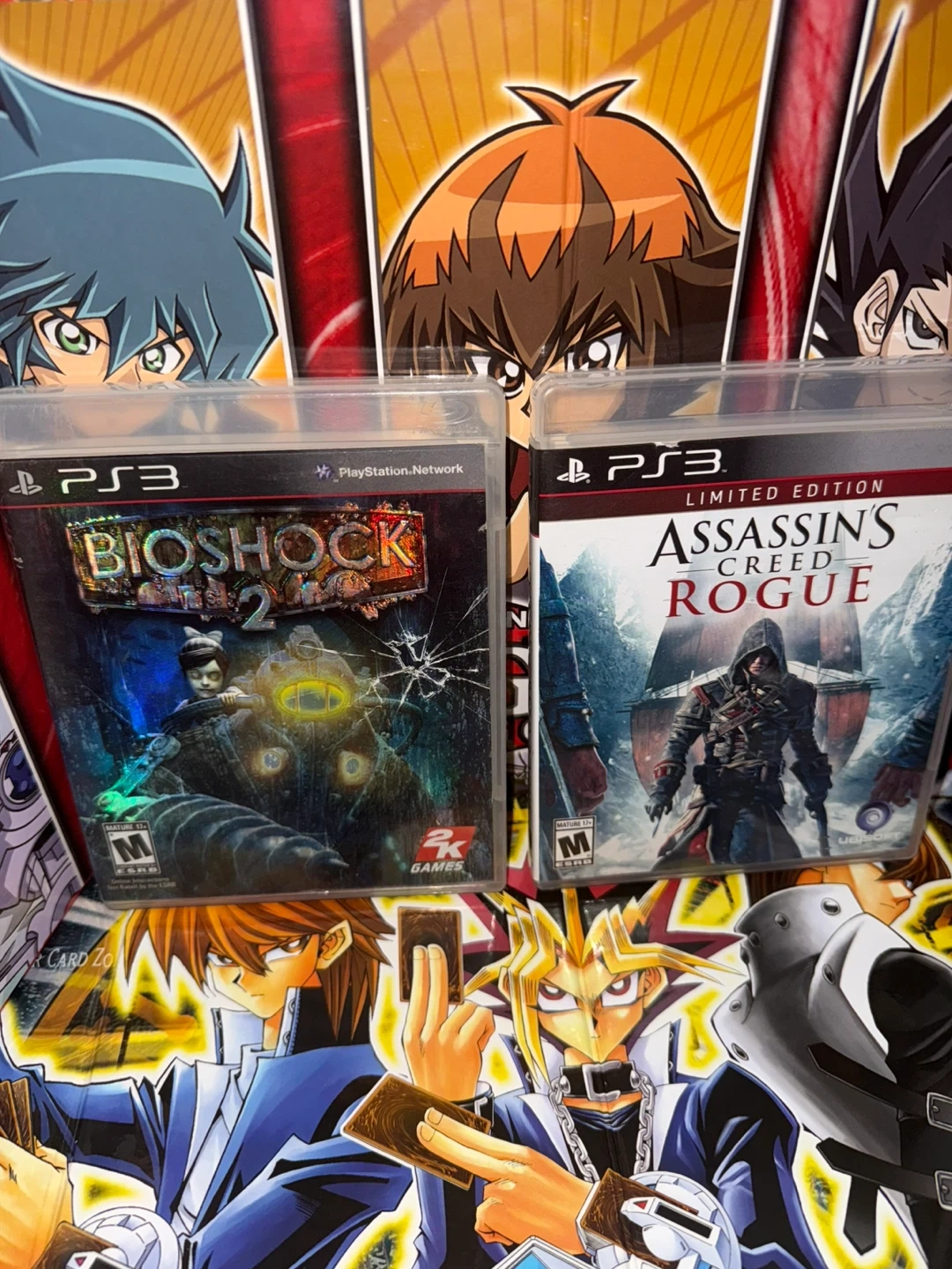 Includes Bioshock 2 and Assassin's Creed Rogue for PlayStation 3. Both games are in their original cases. Assassin's Creed Rogue is a limited edition.