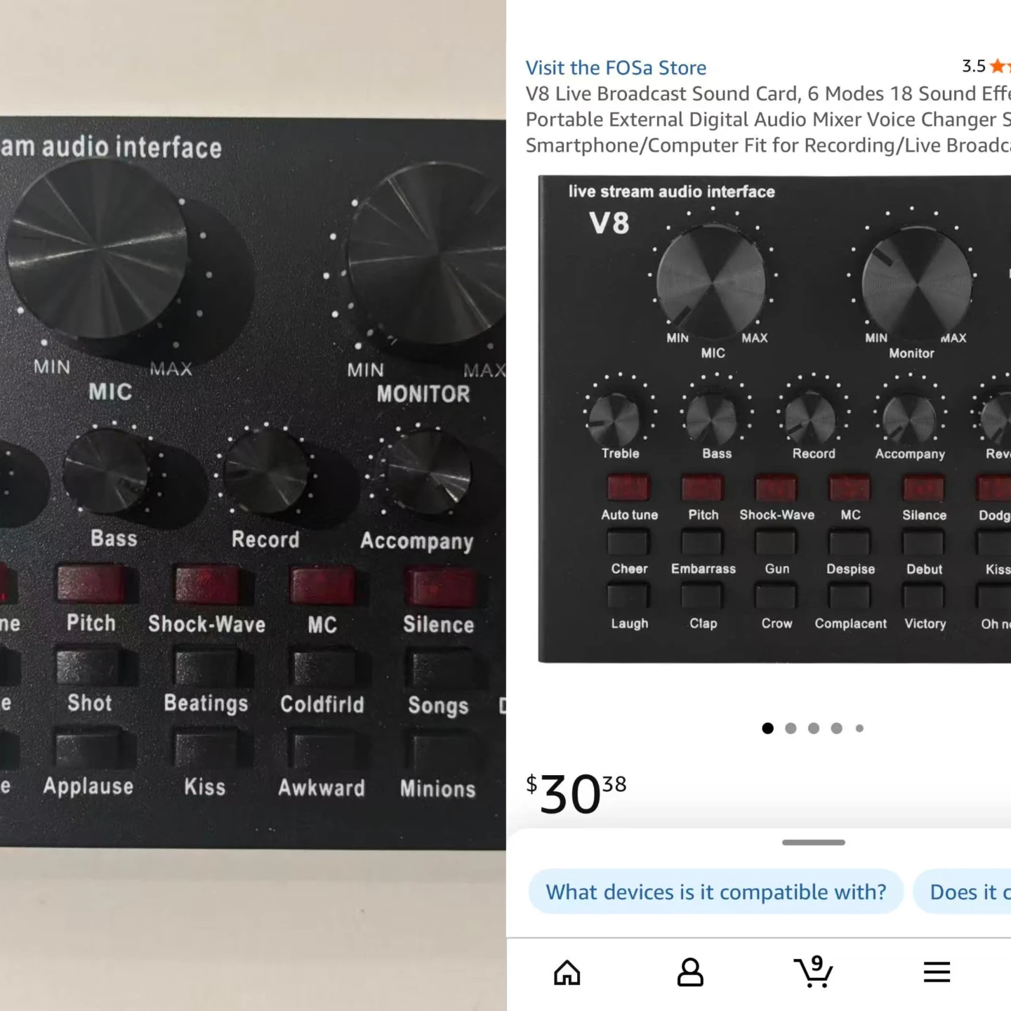 - V8 Live Broadcast Sound Card