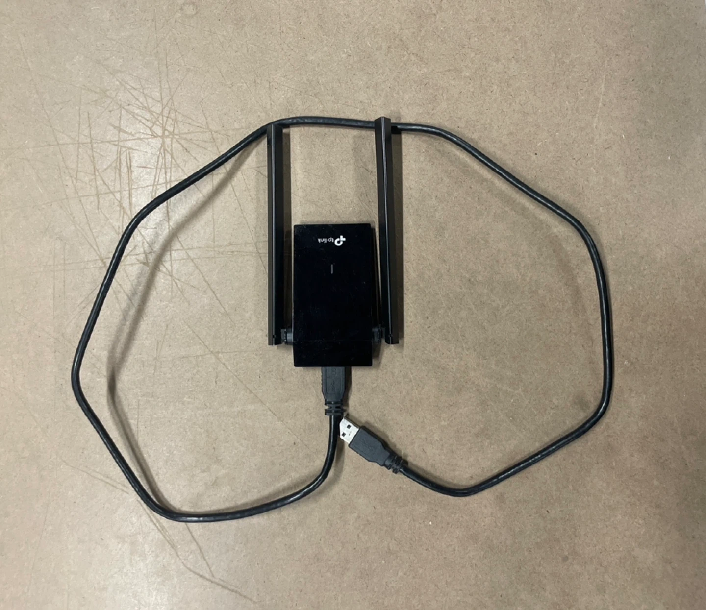 This is a TP-Link Wi-Fi range extender. It's black and connects via USB. It's great for boosting your wireless signal.
