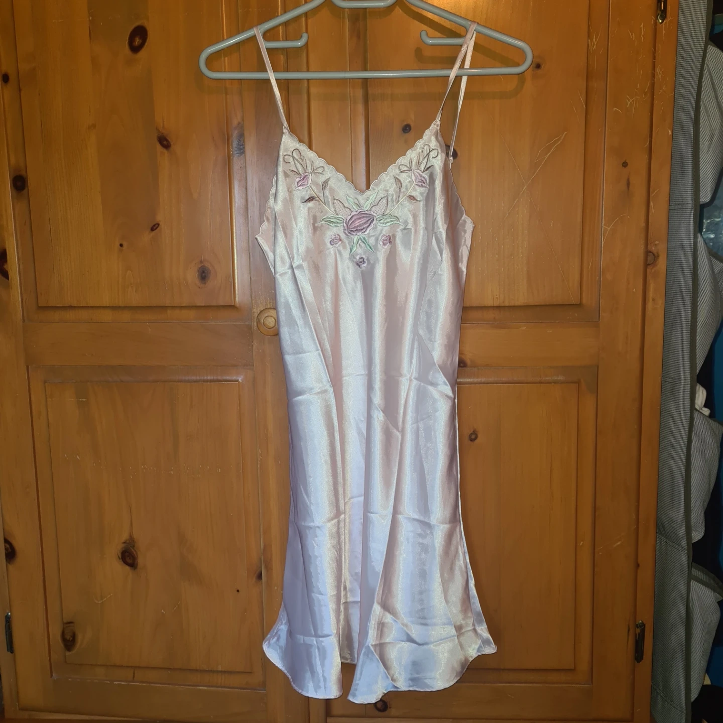 Pink Satin Camisole and Robe Set with Embroidery π
