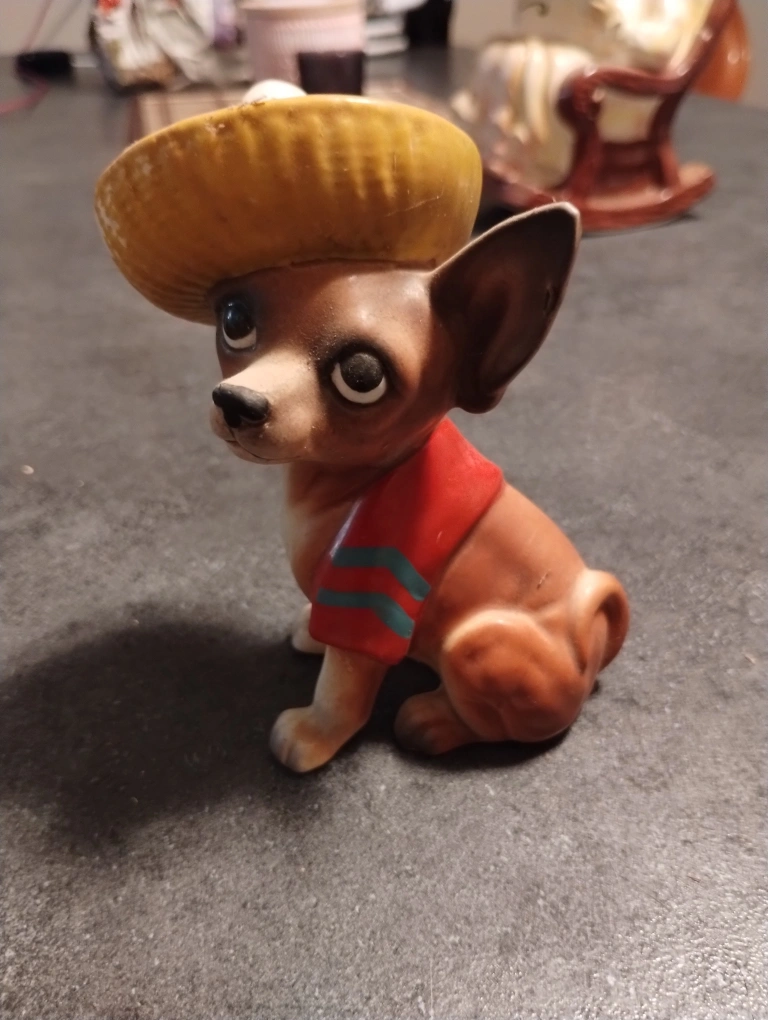 Vintage Ceramic Chihuahua Figurine in Sombrero