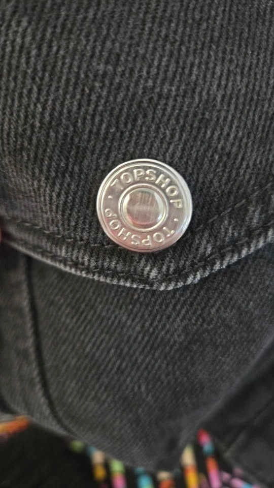 Top Shop Black Jean Jacket, Size 6 Eur 38