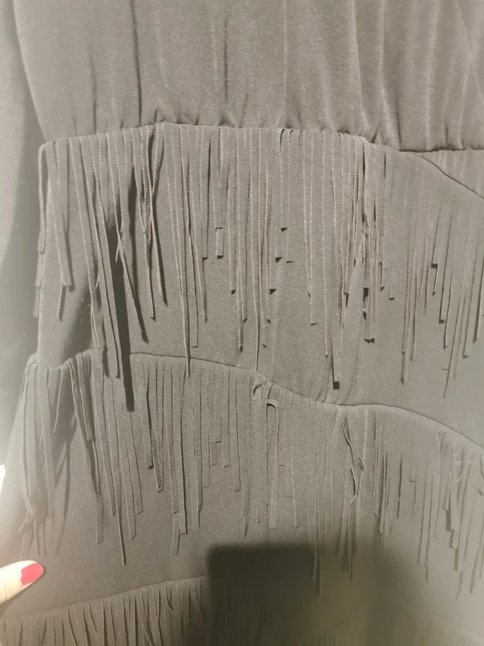 Selling a Zara black tassel dress in size large ! It features a stylish fringe design and long sleeves. Perfect for a night out or a special occasion. The material is comfortable and the dress is in great condition!