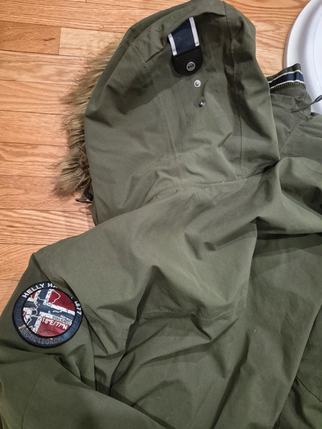 Selling a Helly Hansen Arctic Legacy parka in a great olive green colour! This jacket is super warm and ready for the Canadian winter. Features include: