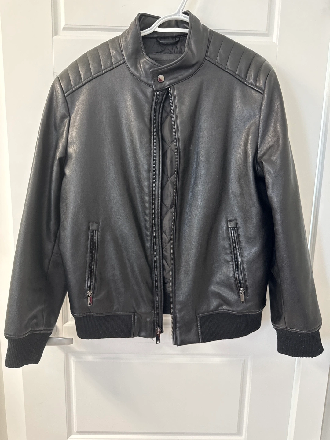 Selling a stylish black leather jacket from DKNY. It's in great condition and has a sleek, modern look. Perfect for adding a touch of edge to your wardrobe! Size M-L. Check other listings for more.