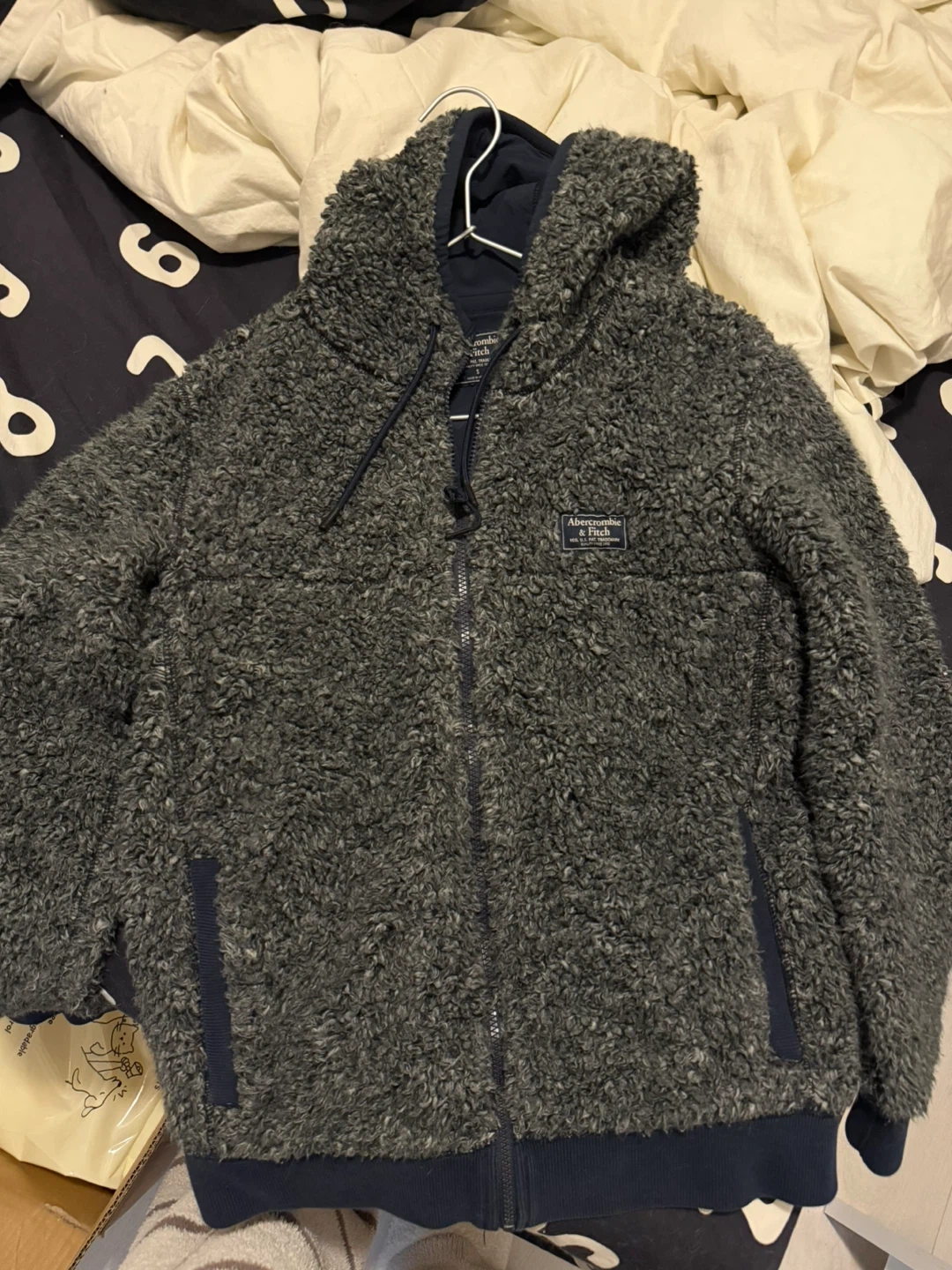 Cozy Abercrombie & Fitch fuzzy fleece hoodie. Full zip closure with front pockets and a drawstring hood. Size is small.(men’s) feels like a m/L for women