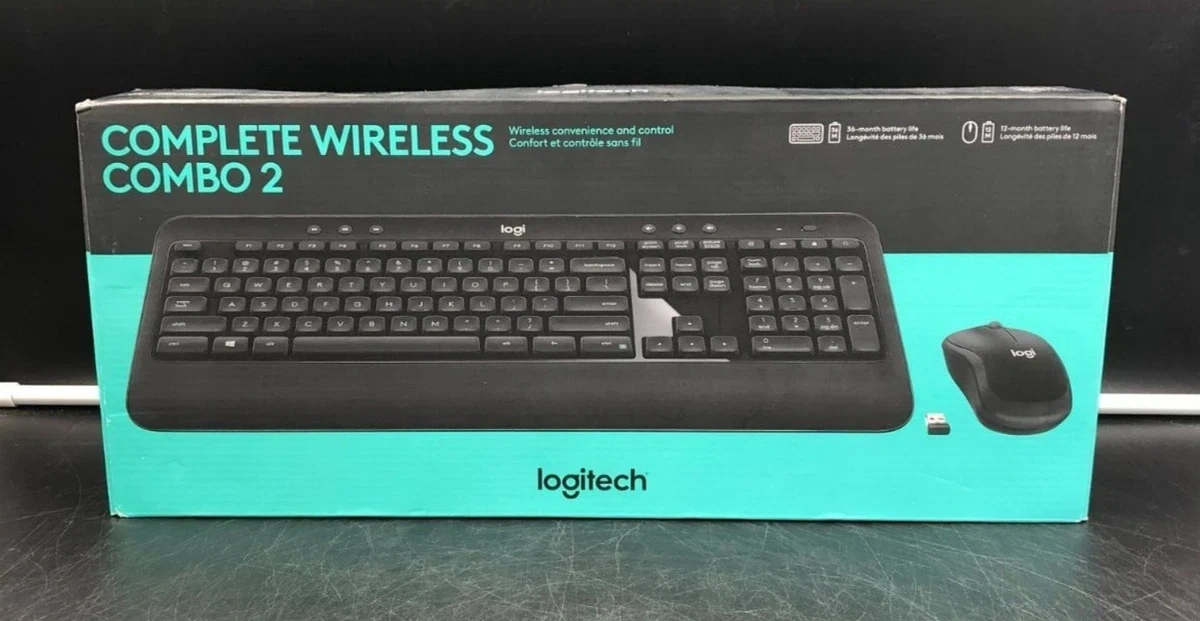 This is a brand new Logitech Complete Wireless Combo 2 keyboard and mouse set. It comes with a wireless keyboard and mouse, plus a USB receiver for easy setup. Experience wireless convenience and control for your computer tasks.