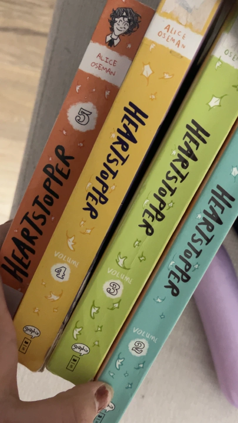 This is a set of four Heartstopper graphic novels by Alice Oseman, including volumes 2, 3, 4, and 5. They're published by Graphix. These books are great for fans of the series!
