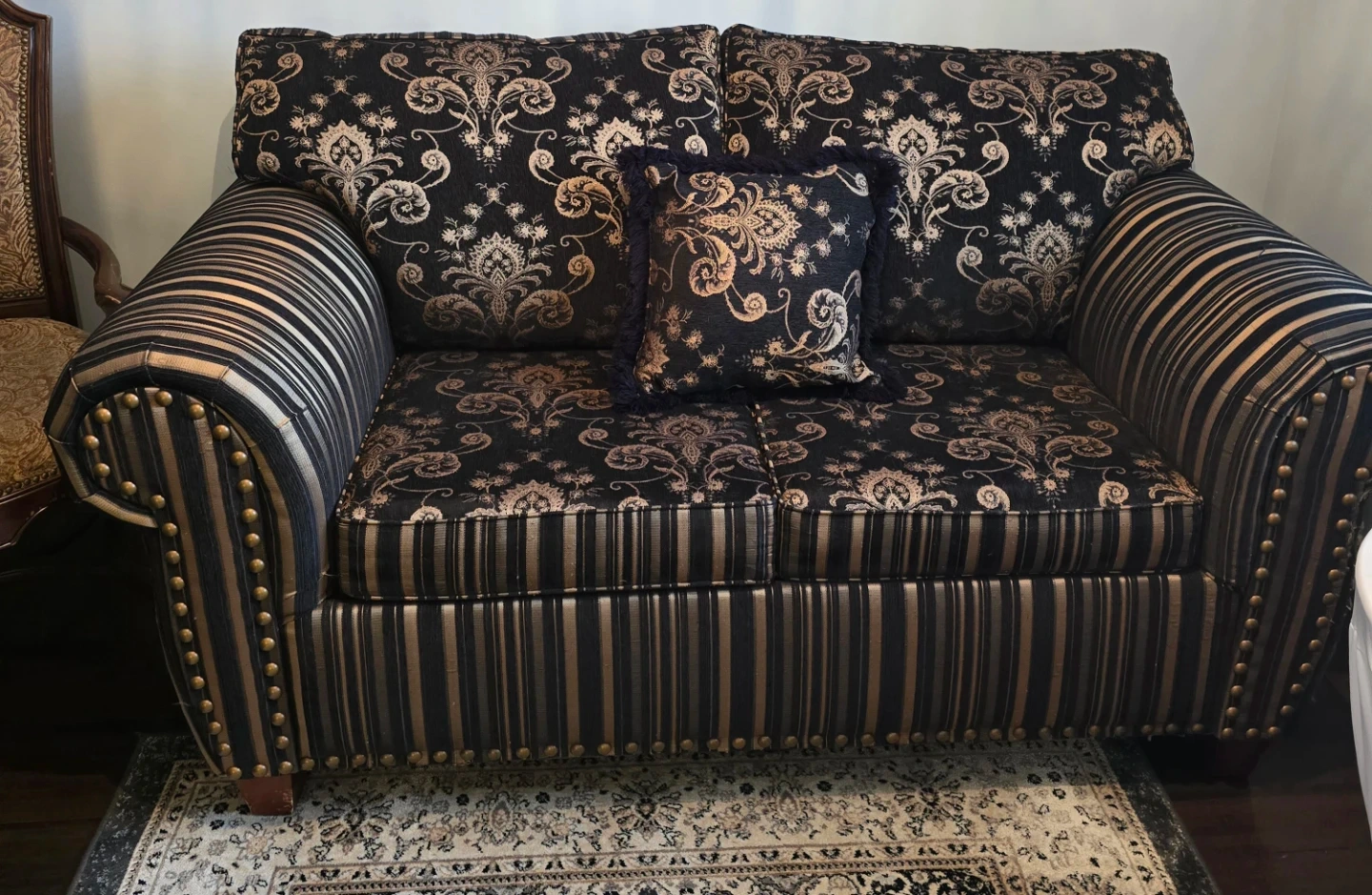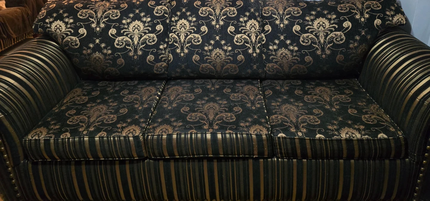 Black and Gold Damask Sofa