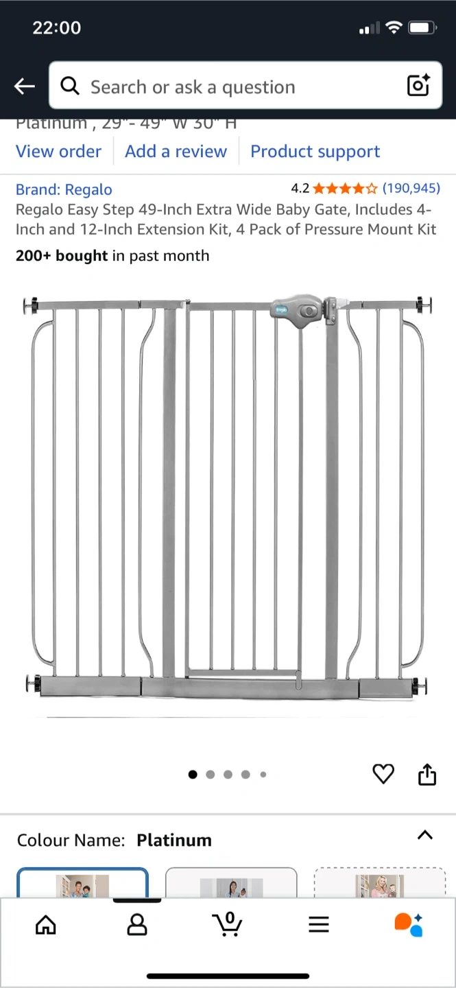 Selling a Regalo Easy Step Extra Wide baby gate. It's a metal walk-through safety gate that fits openings 29" - 49" wide and 30" high. The colour is Platinum. Never used, purchased but no longer needed. Comes with the original box!
