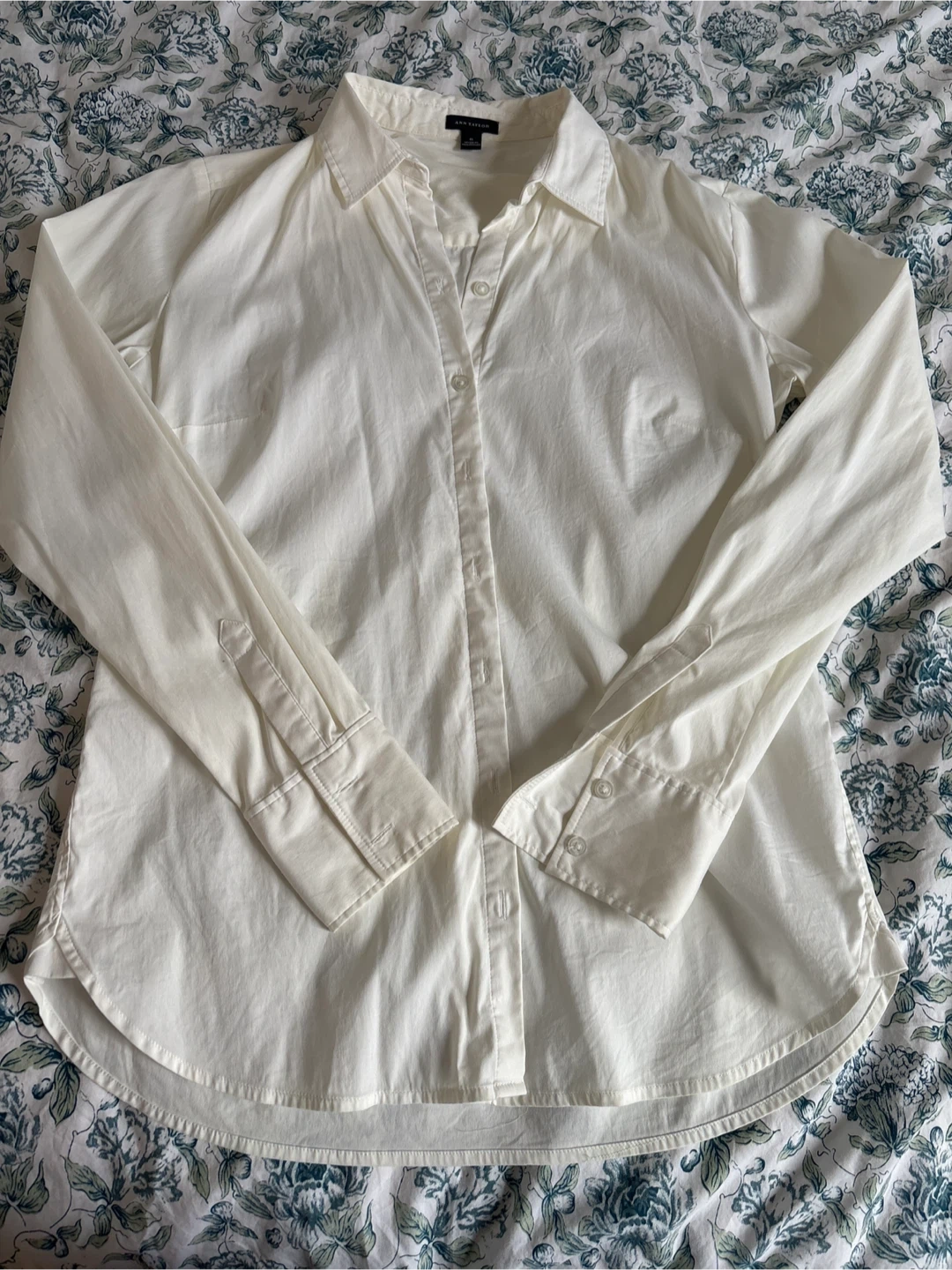 Ann Taylor long-sleeved white button-up shirt. Very well cut! Size 6. A classic piece for any wardrobe!