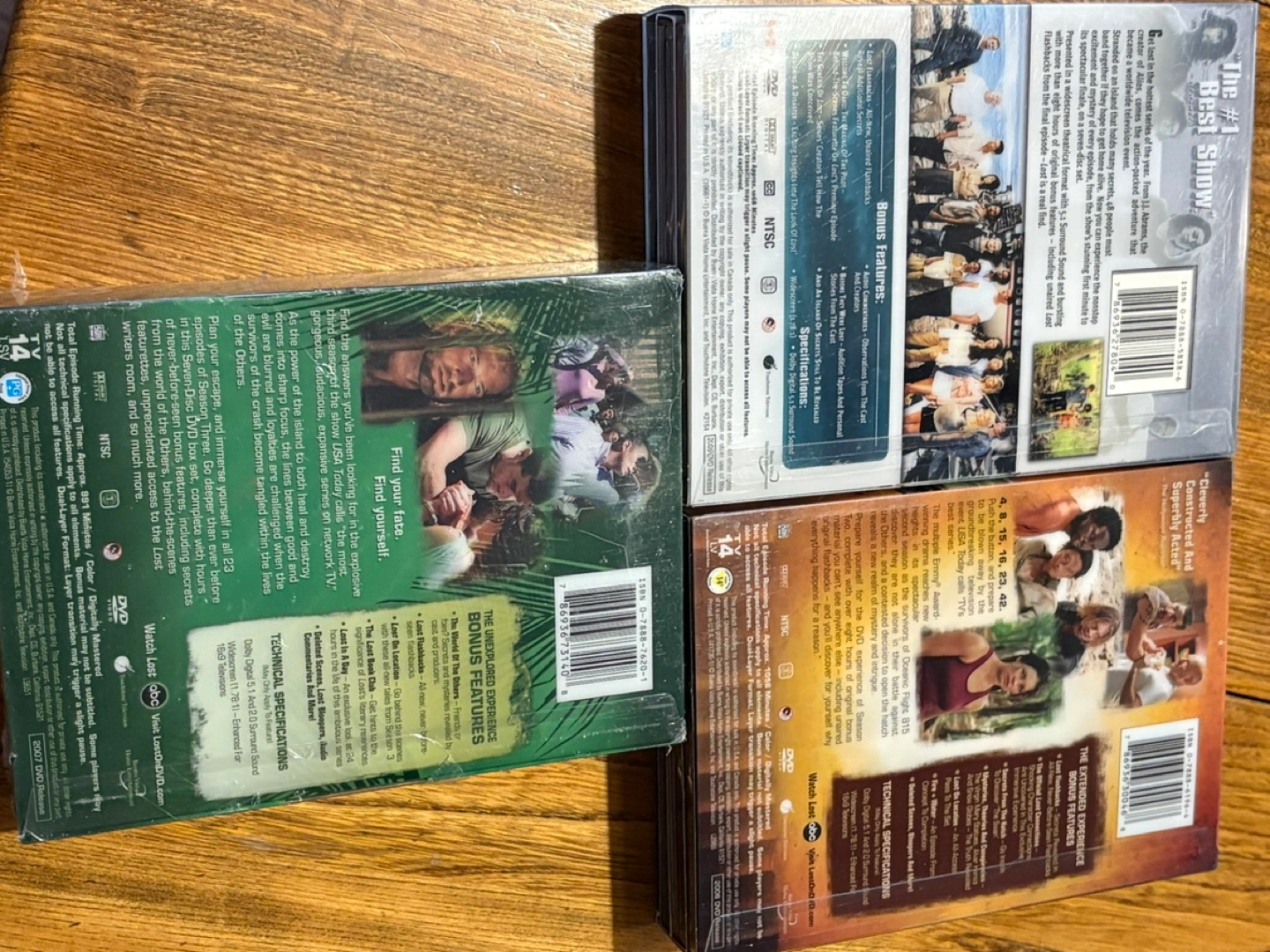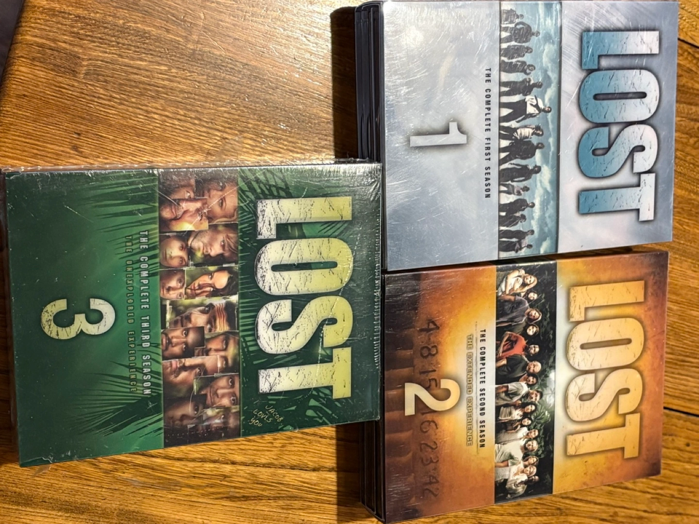 DVD box sets of Lost, seasons 1-3. Excellent condition. Great for collectors or fans.