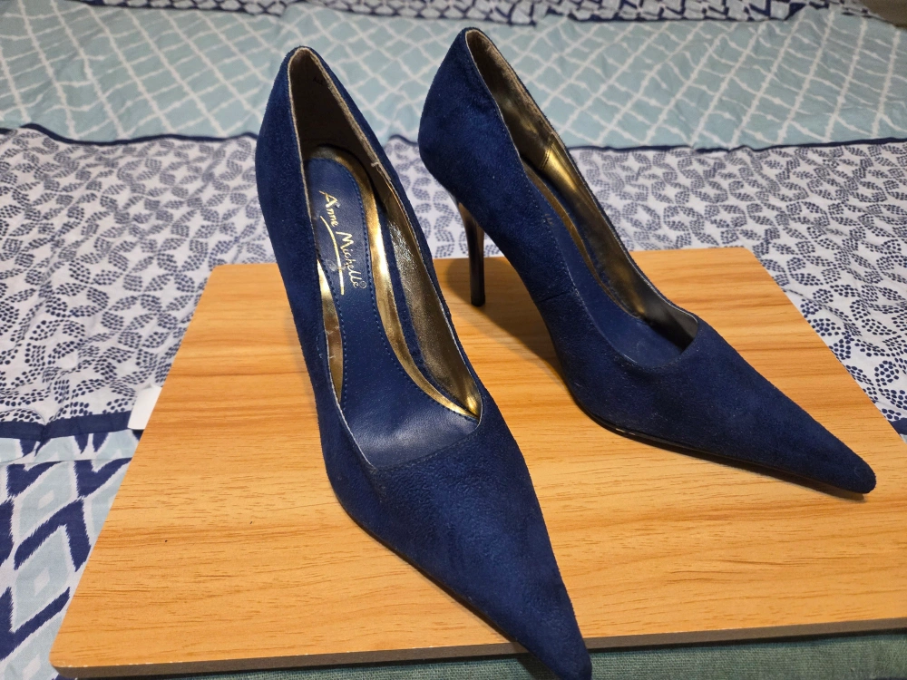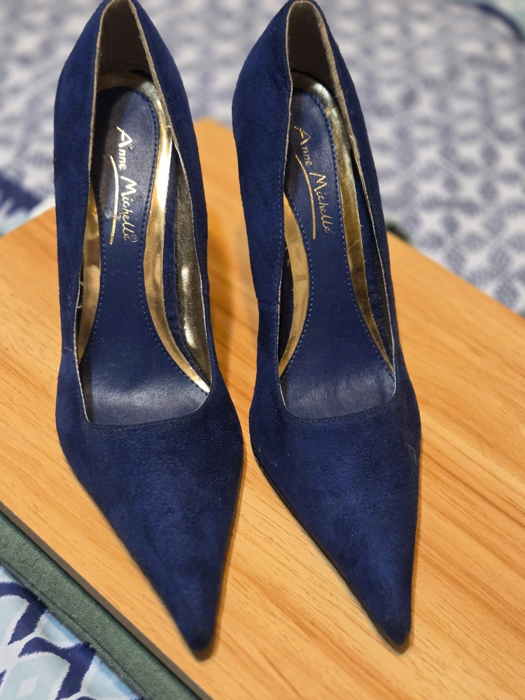 Selling a pair of Anne Michelle heels in navy blue! They're in great condition and ready for a new owner. These heels are perfect for dressing up any outfit and adding a touch of elegance