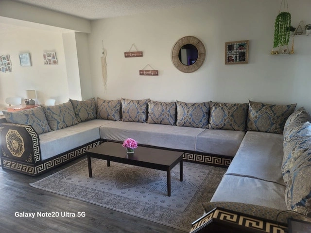 Elegant Arabic-Style-Theme Sofa Set. Beautiful brushed-theme corner sofa set in good condition, perfect for any living room. Selling only because I’m doing home renovations. Arabic style design. Extra piece included (can be placed anywhere). Comes with pillows & blankets. Spacious, comfortable, and well kept. Suitable for modern or traditional homes.