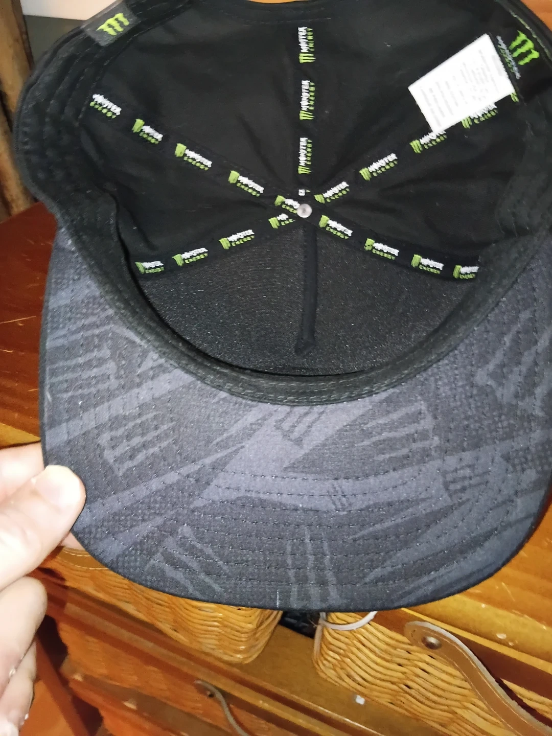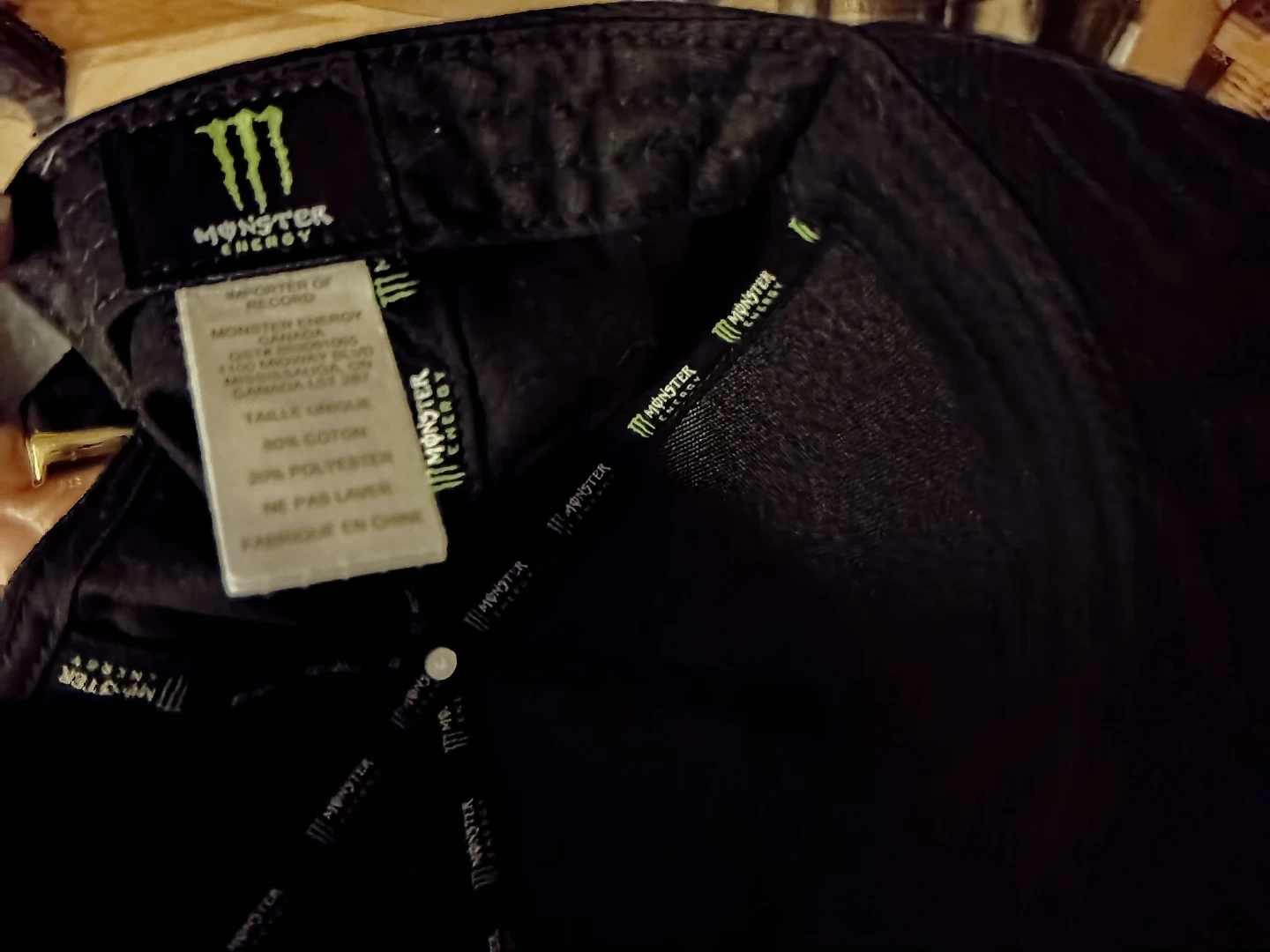 Black Monster Energy branded cap. Made with 80% cotton and 20% polyester. Snapback style hat. Worn for maybe 10 mins. Not my kind of fit yuh know? Lol