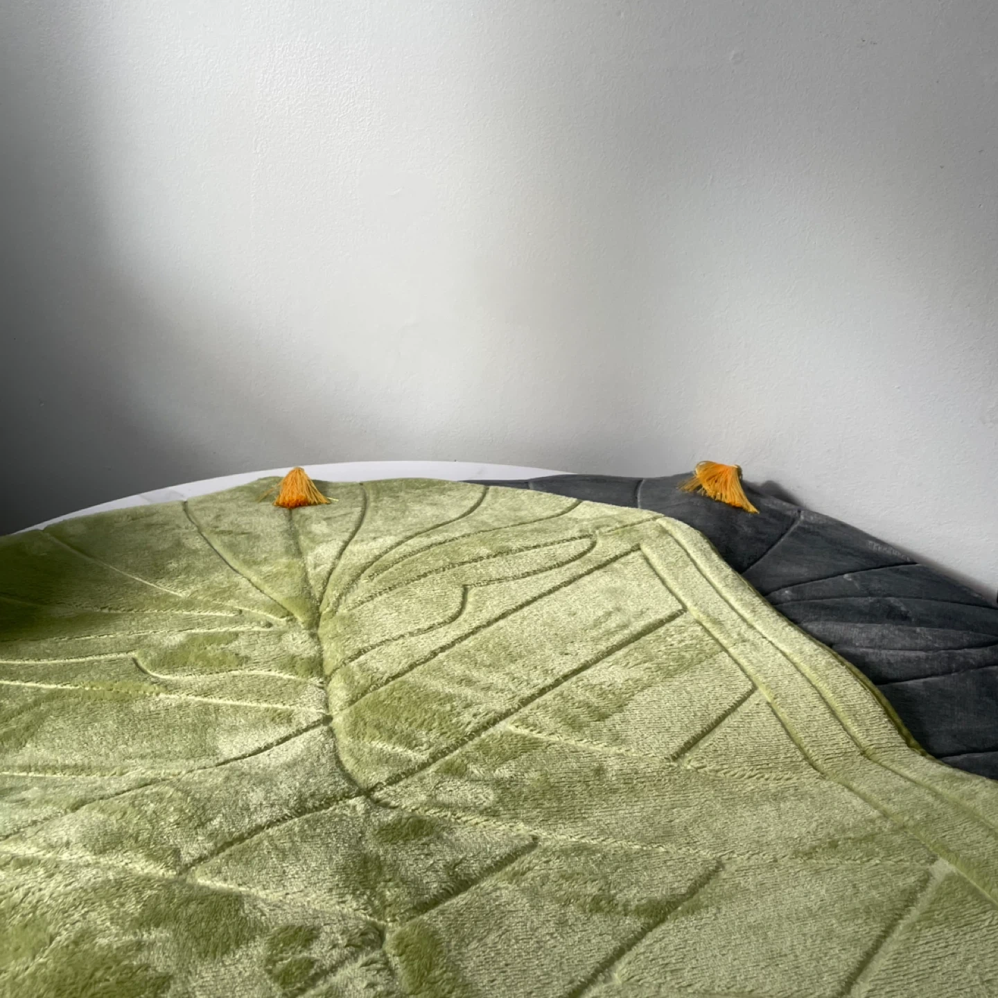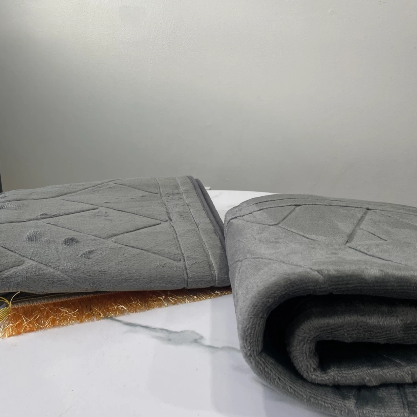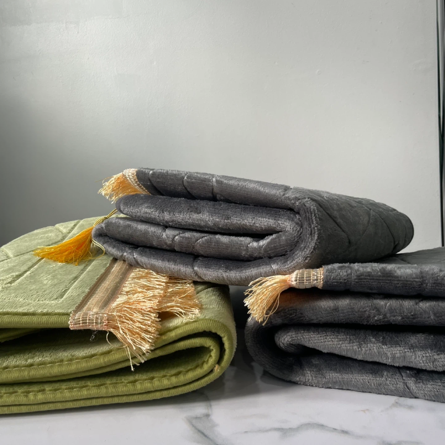 Set of three plush prayer rugs. They feature a textured leaf design with decorative tassels. Soft and comfortable for daily use.