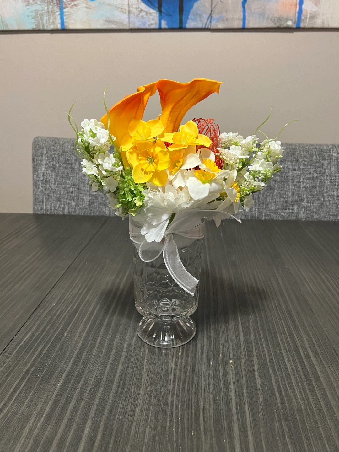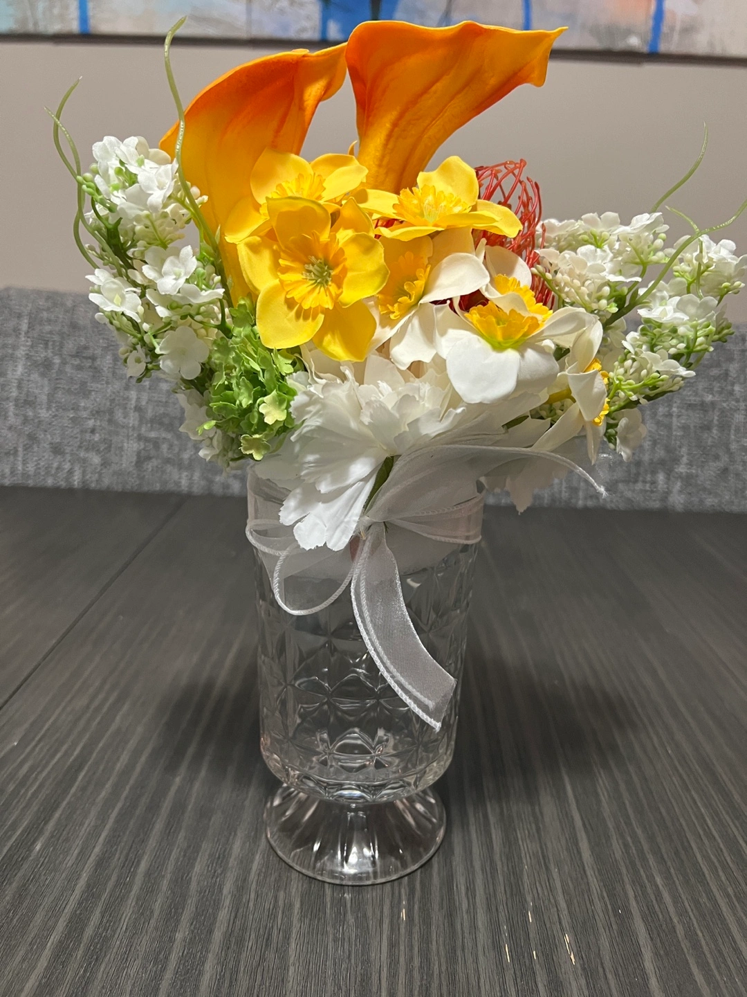 Artificial Flower Arrangement in Crystal Vase