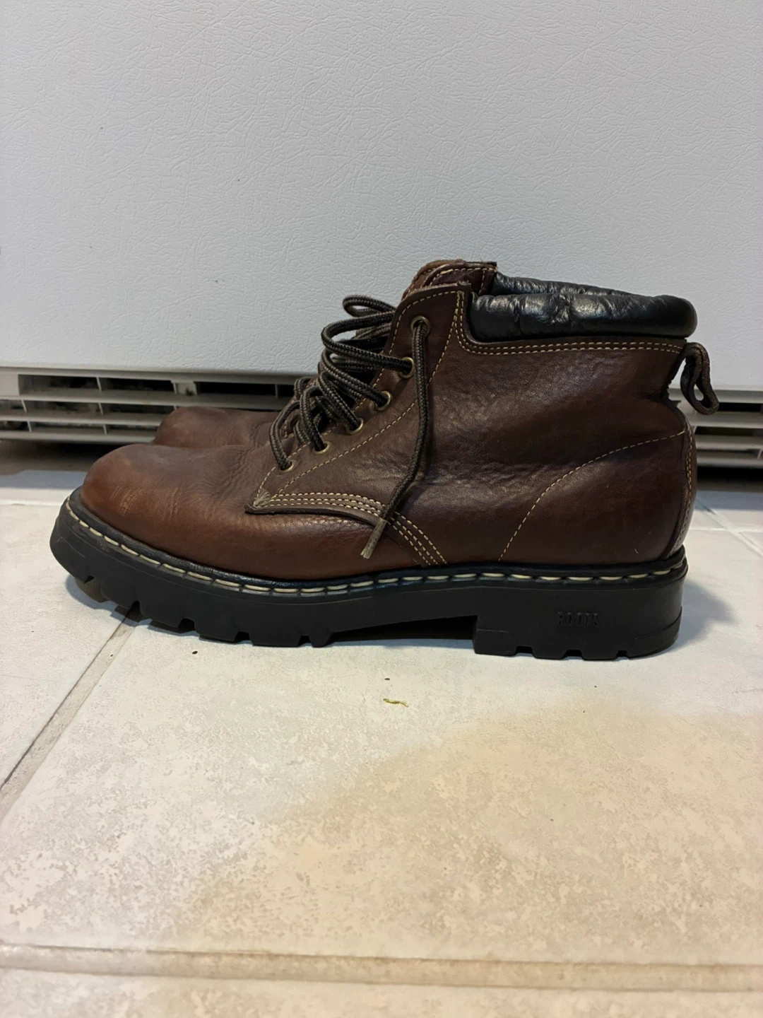 Selling a pair of Roots work boots in a nice brown leather. They have a rugged look and are size 10.Great for work or everyday wear! made in Canada🤩