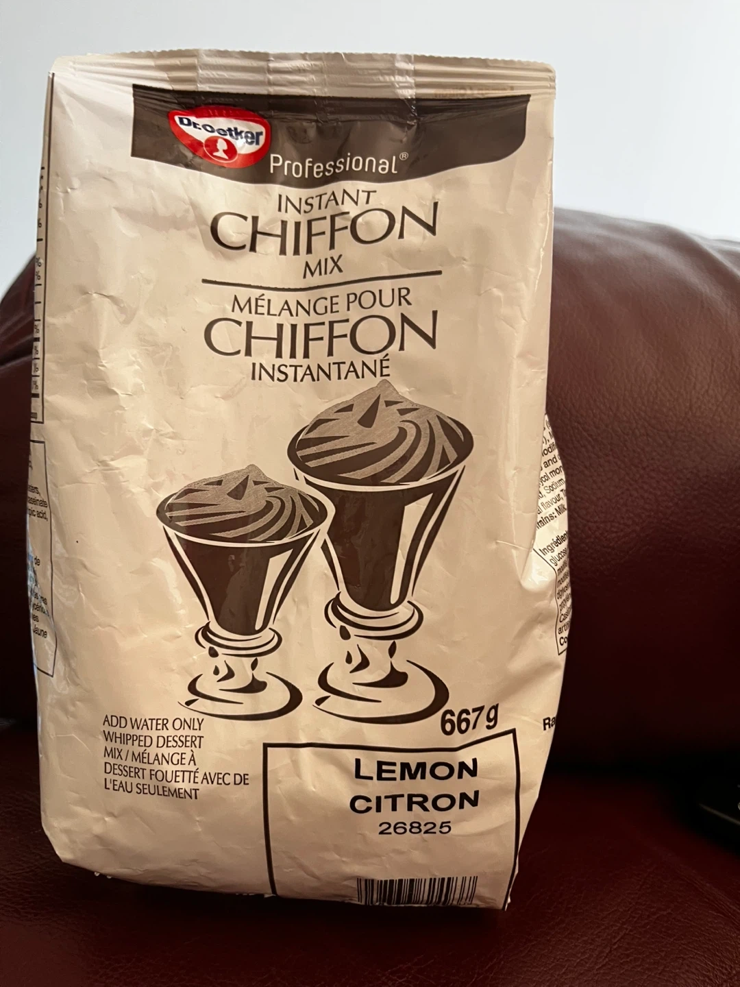 Dr. Oetker Professional Instant Chiffon Mix. Lemon flavour. Simply add water for a whipped dessert. 667g bag.