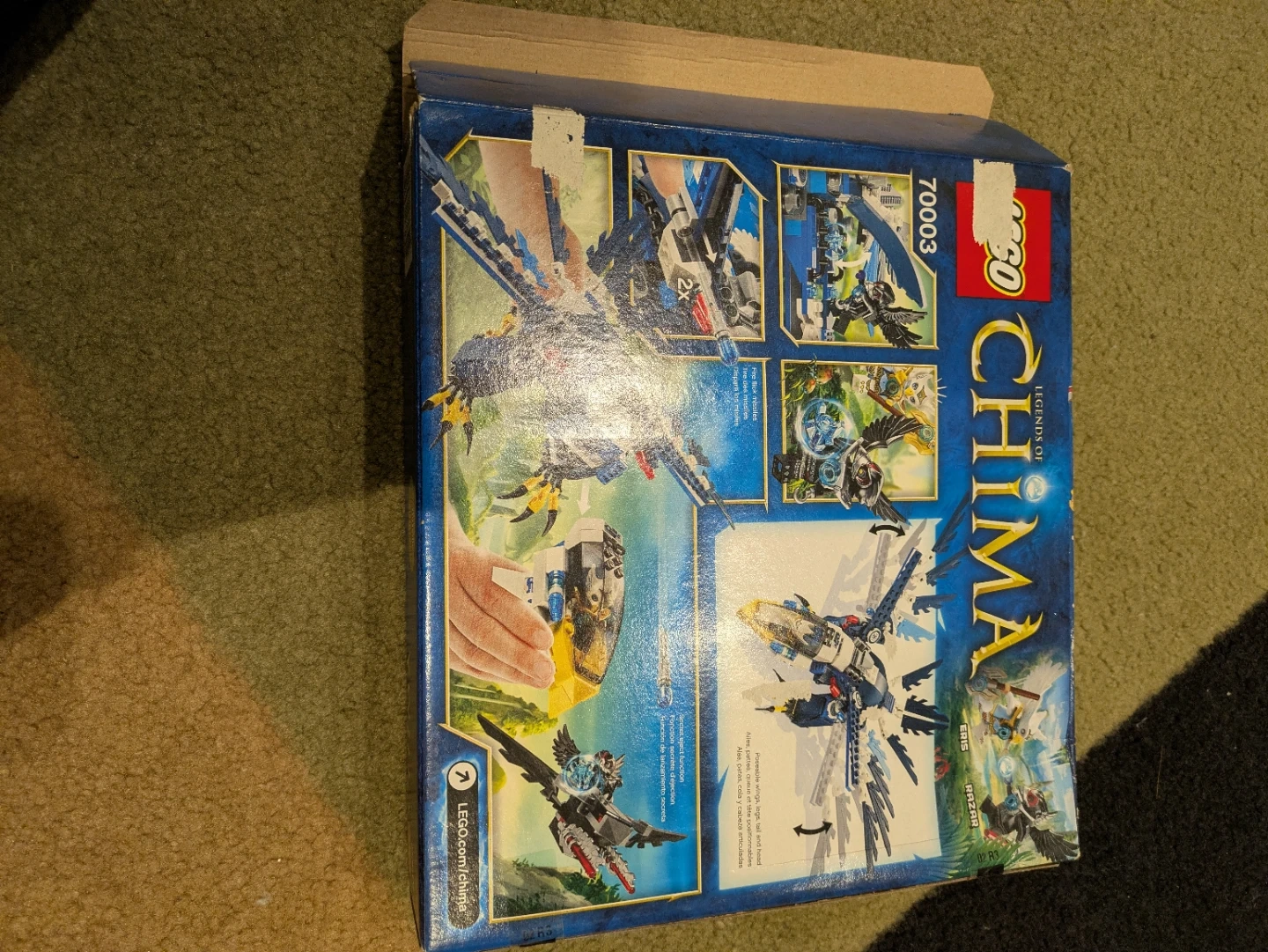 This is the LEGO Legends of Chima Eris Eagle Interceptor set 70003. Bags 2 and 3 are sealed, but bag 1 is missing a good amount of pieces. The required pieces and Minifigures can be found for cheap online. Looking for $45 OBO!