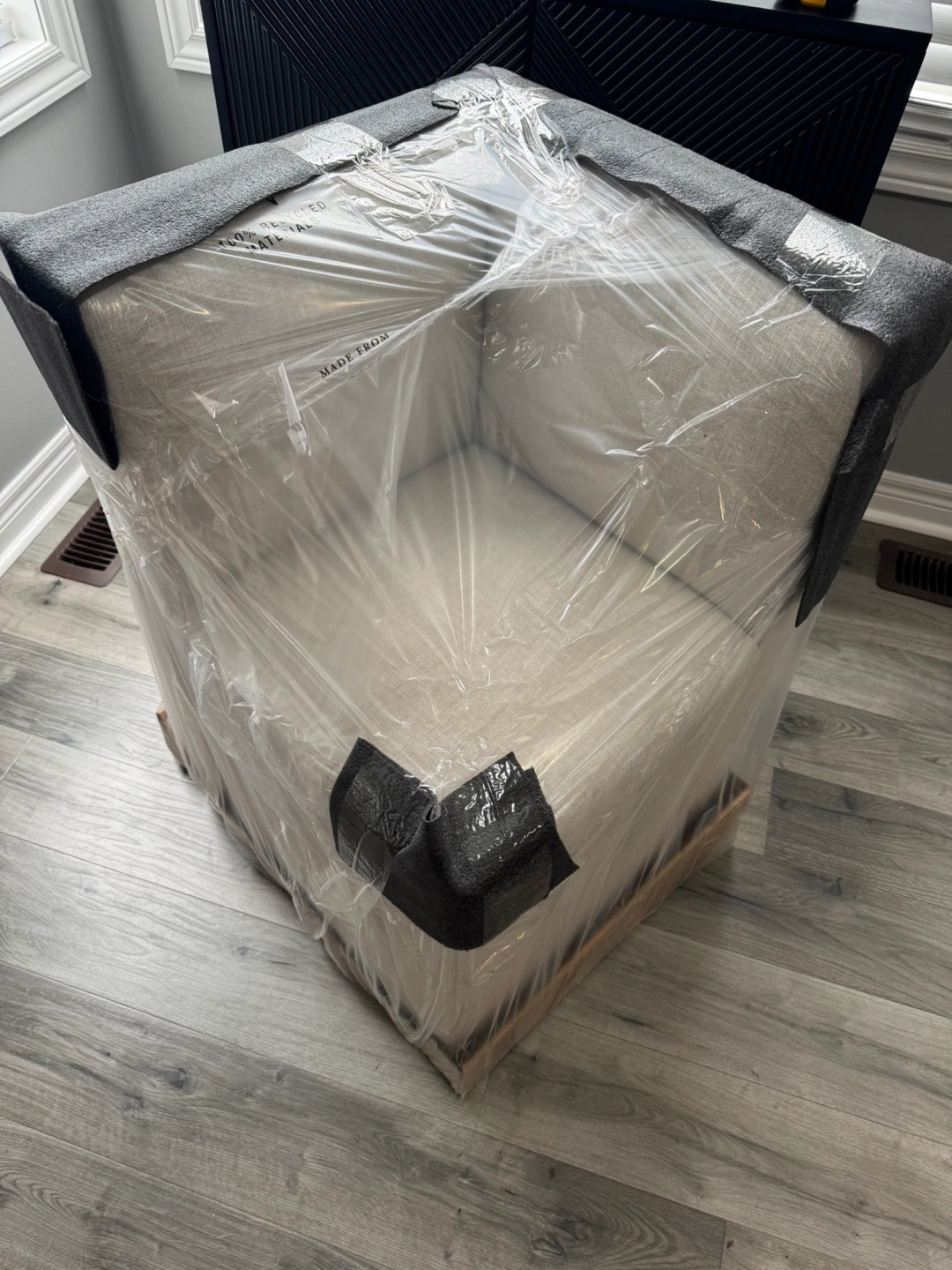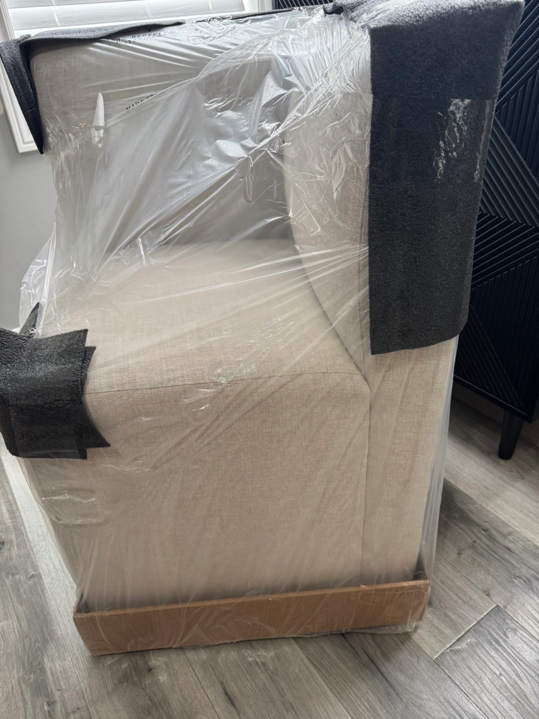 Selling a brand new corner chair! It's still in its original packaging, so you'll be the first to use it. The chair is a lovely neutral colour that would fit in with any decor. Perfect for adding a cozy reading nook to your home.