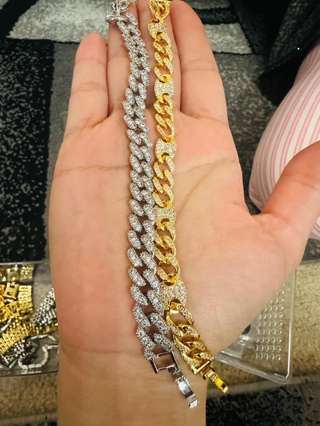 Selling two stylish Cuban link bracelets! One is gold plated and the other is silver. They are in great condition and ready to add some sparkle to your wrist