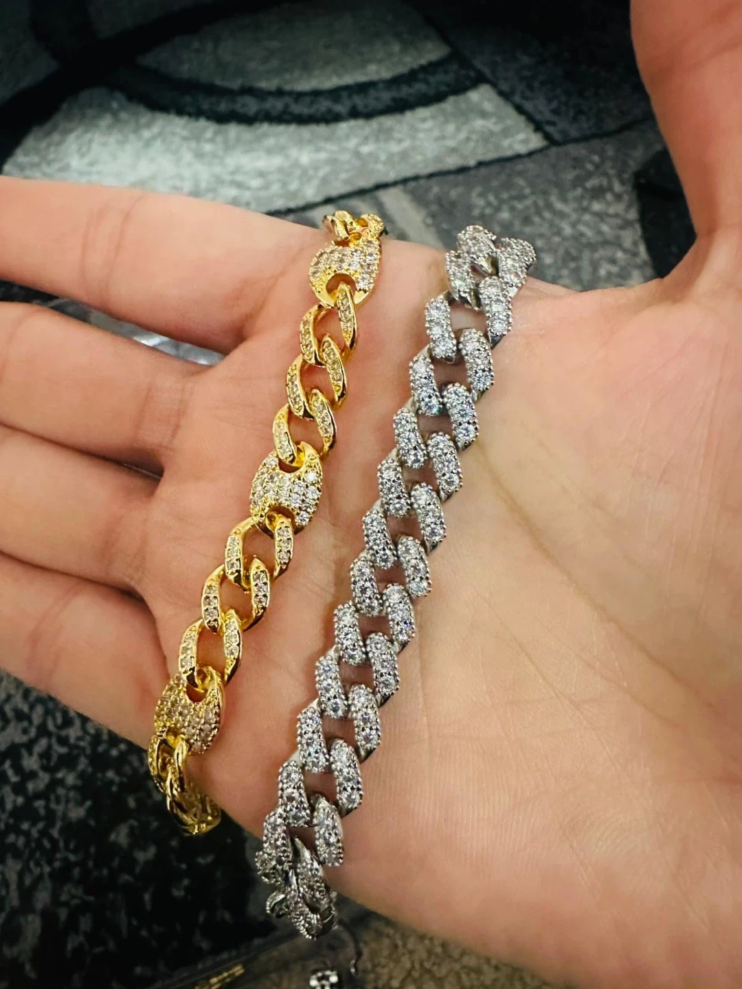Selling two stylish Cuban link bracelets! One is gold plated and the other is silver. They are in great condition and ready to add some sparkle to your wrist