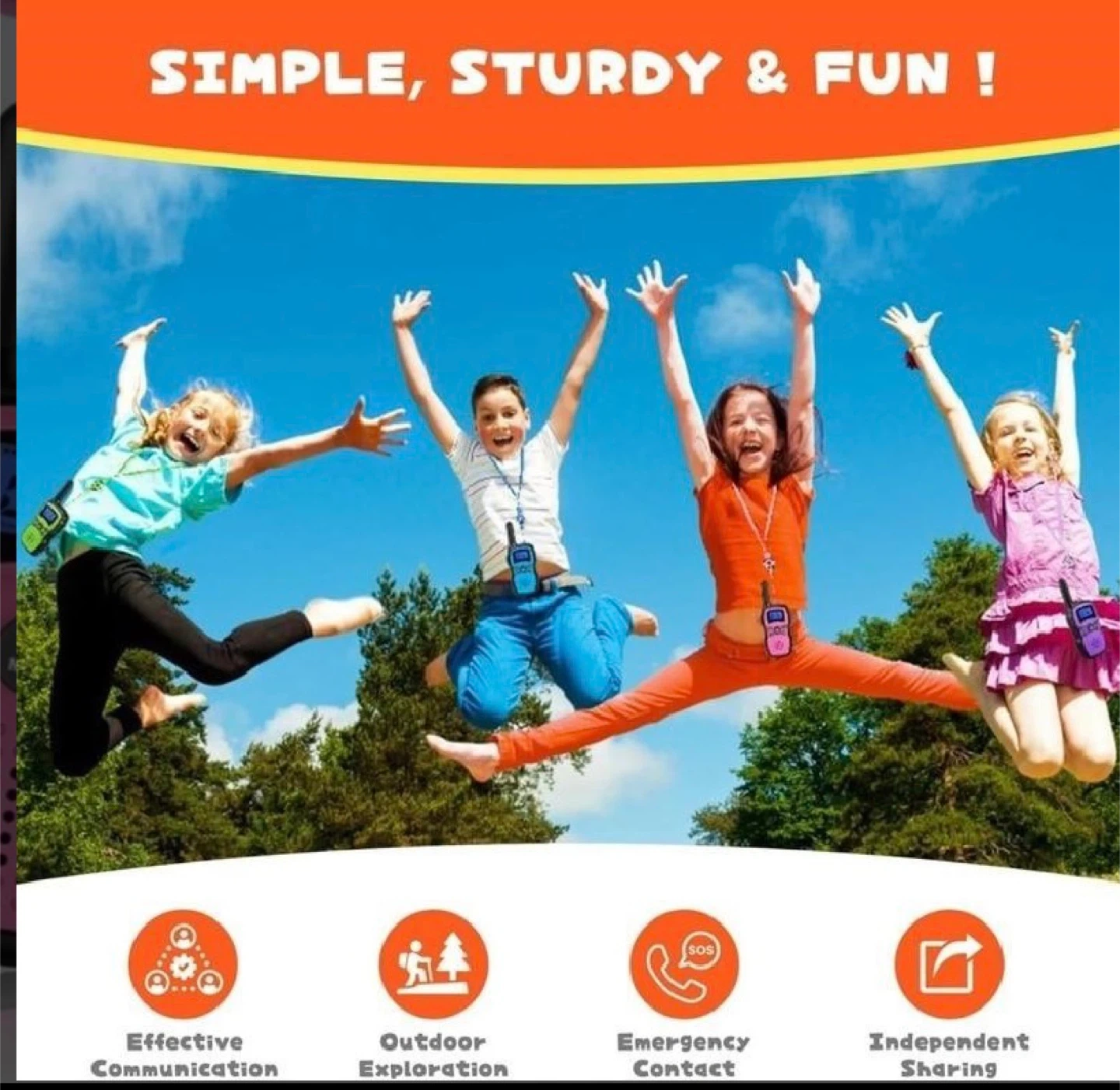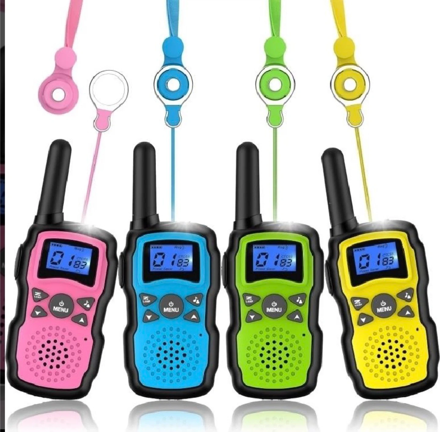 This set includes four WisHouse walkie talkies in pink, blue, green, and yellow. They're perfect for kids' adventures and outdoor play. These walkie talkies are designed for simple communication and exploration.