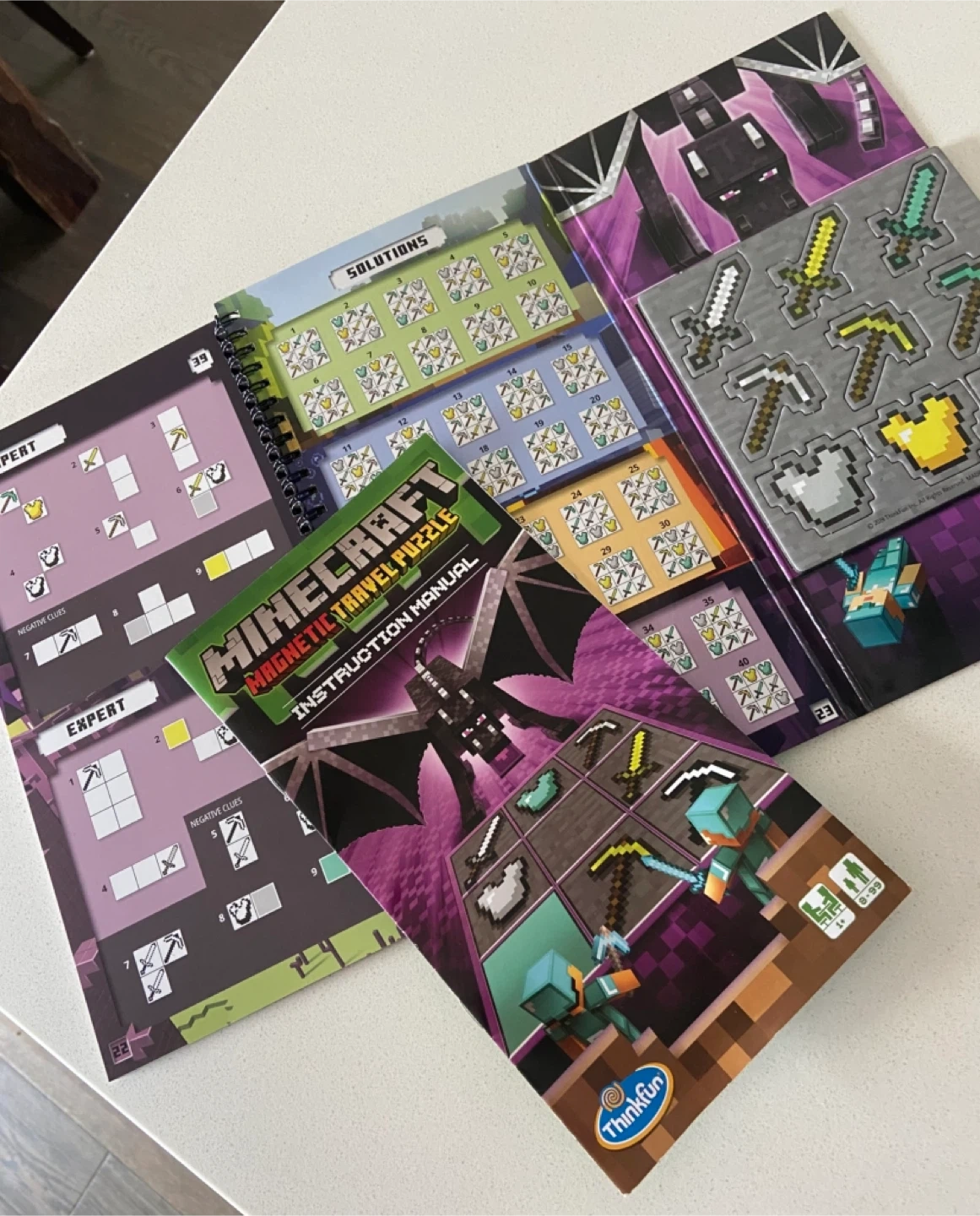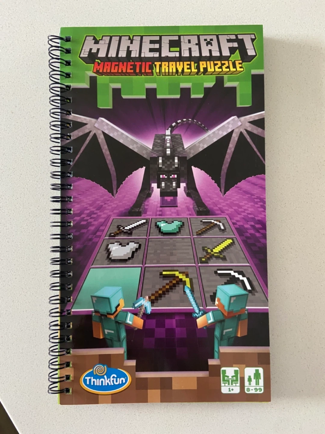 This ThinkFun Minecraft Magnetic Travel Puzzle is a great brain teaser. It includes a game board, magnetic pieces, and an instruction manual with solutions. Recommended for ages 8-99