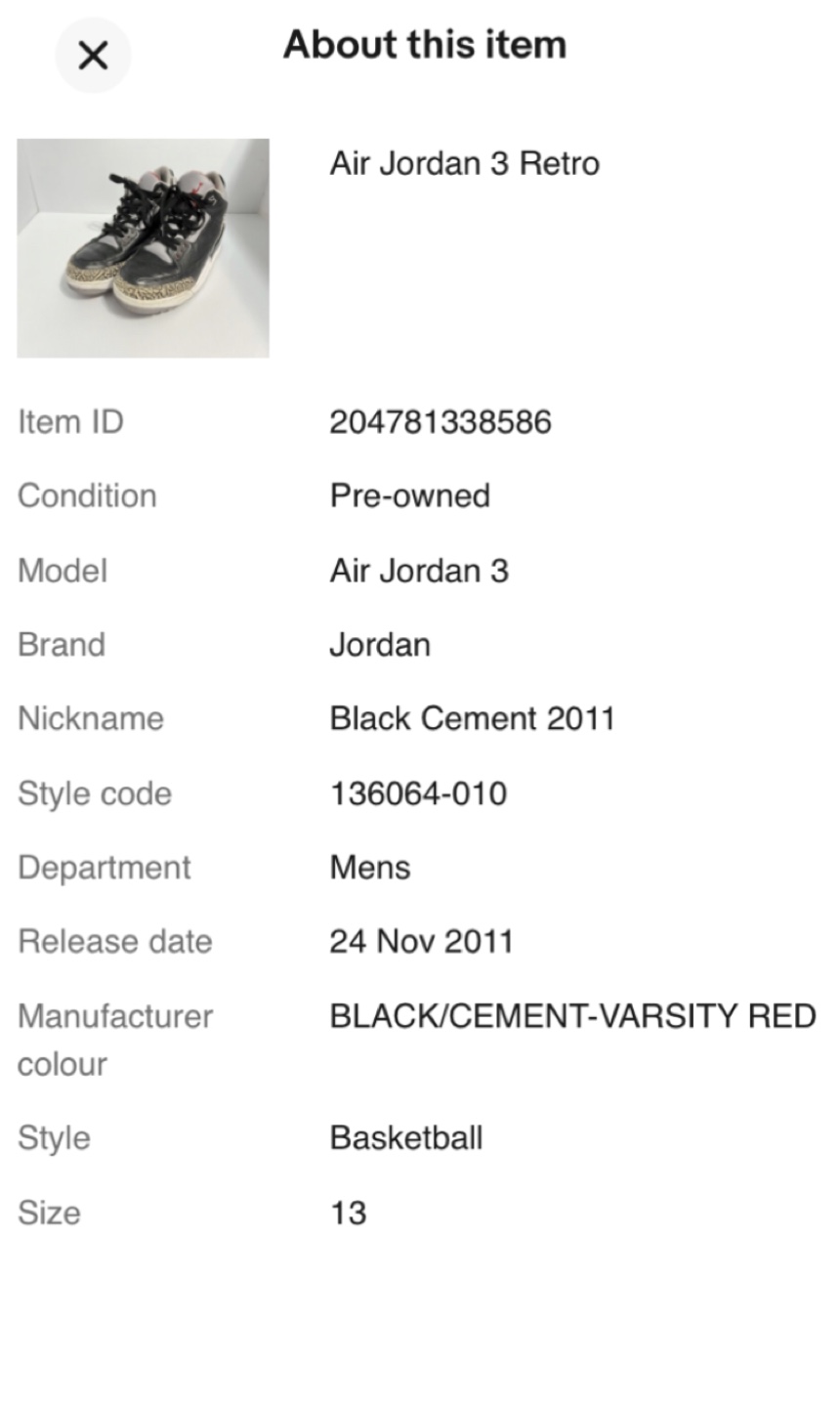 1 / 31 / 3Buy & SellAir JordanAir Jordan$70EBay verified, with tags and everythingConditionGoodSize13BrandAir JordanWHERE TO MEET3058 Fifth Line W unit 68View MapSELLERverifiedJordanCooksville18112 reviews5 chats·3 favorites·129 viewsSEND CHAT TO SELLERHi Jordan! I’m interested in your listing.Hi Jordan! I’m interested in your listing.Get the Karrot app to chatSign In to chat