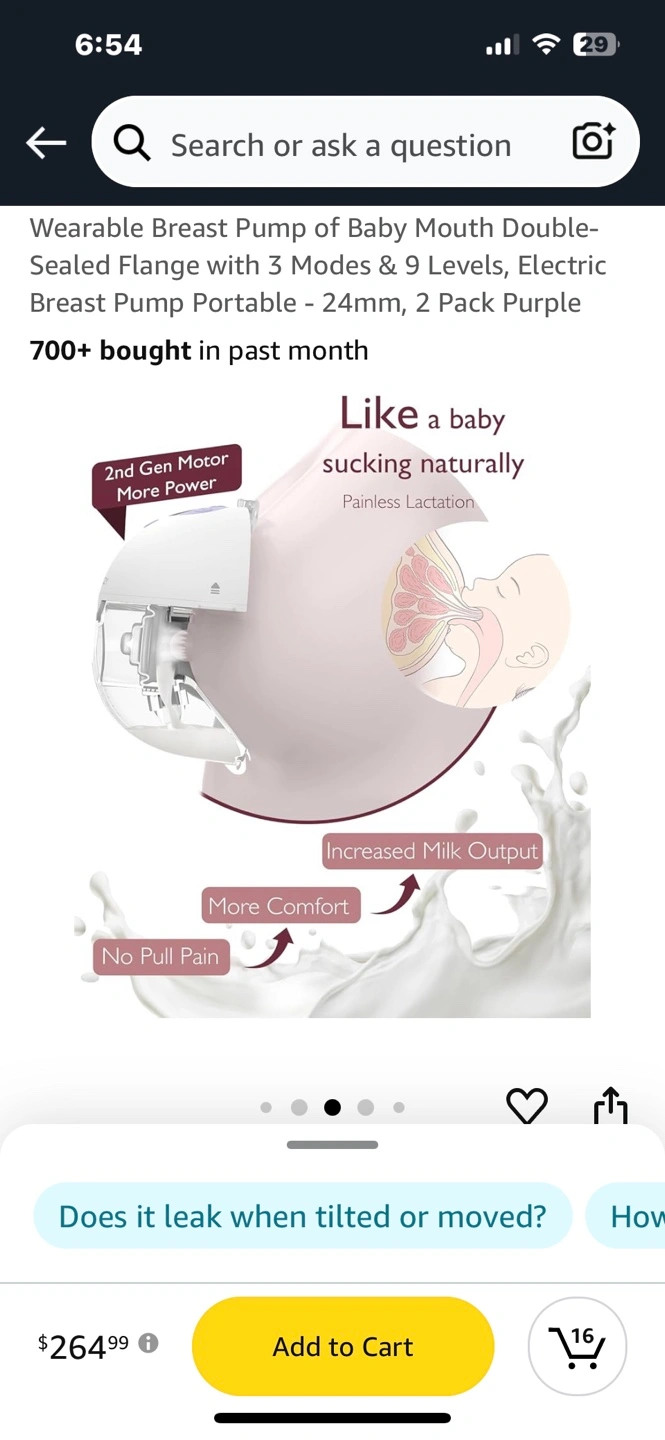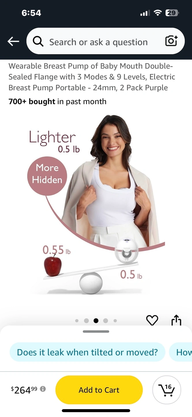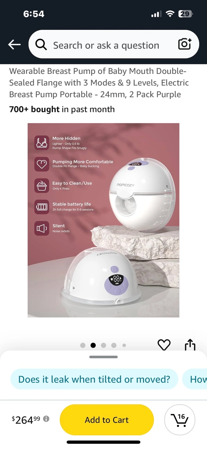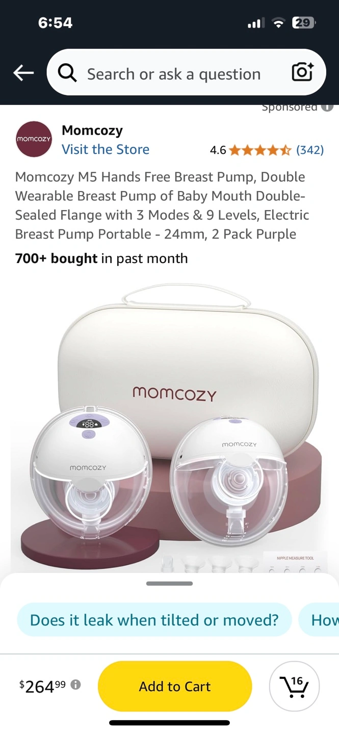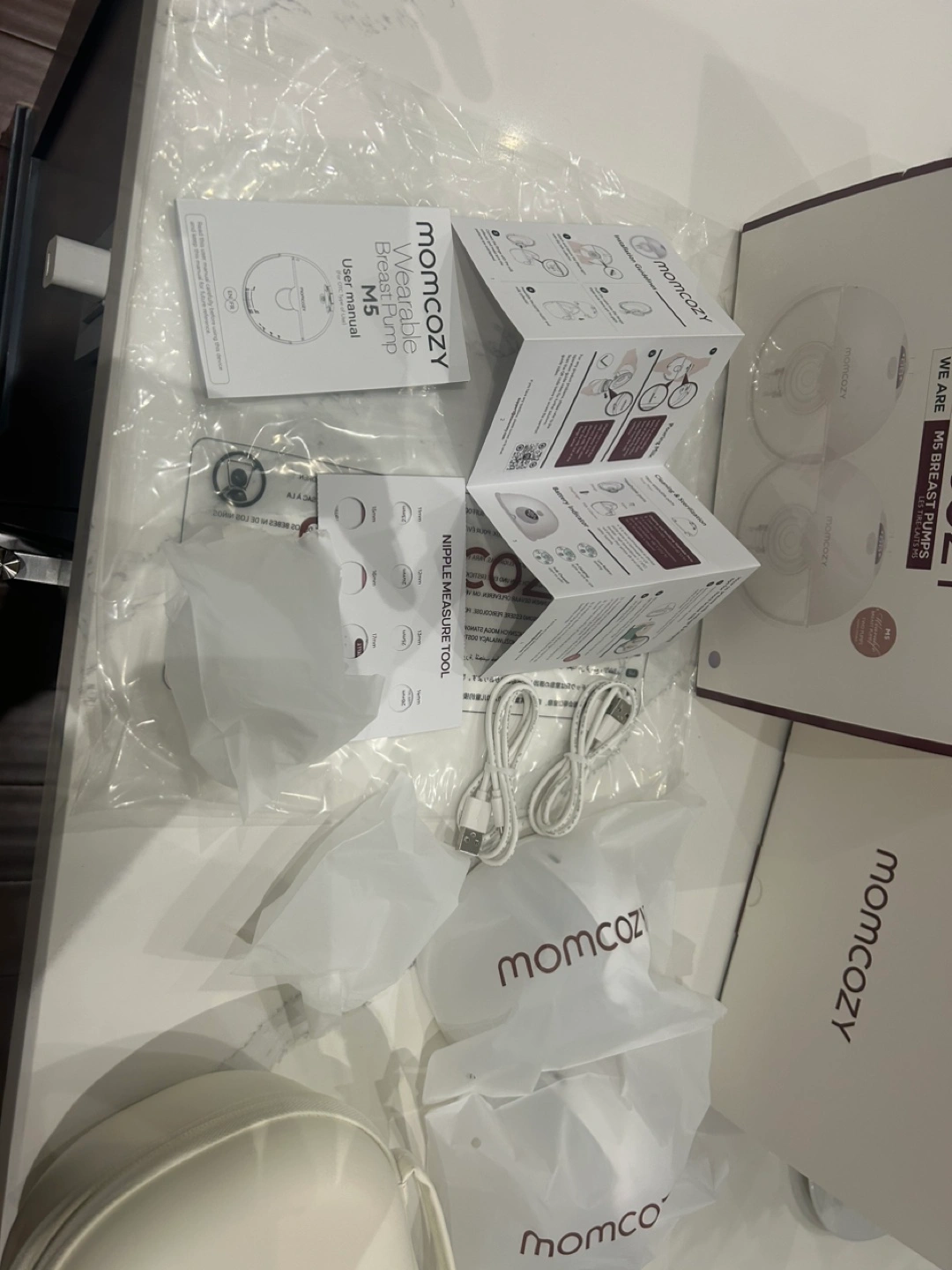 Two wearable breast pumps. Portable and rechargeable. Includes carrying case and accessories. Three modes and nine suction levels. 24mm flange.