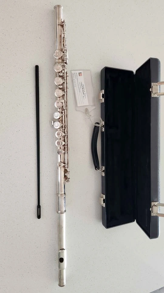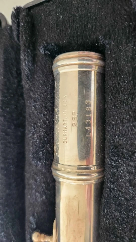 Truly, rarely used. I had to assemble it for the pictures—the joints are perfectly tight. Silver plated (that's what SP stands for). Recently cleaned and has no dents/scratches, also still has the purchase certificate attached. Comes with a cleaning rod and case. Ideal for an intermediate player or a beginner with commitment.