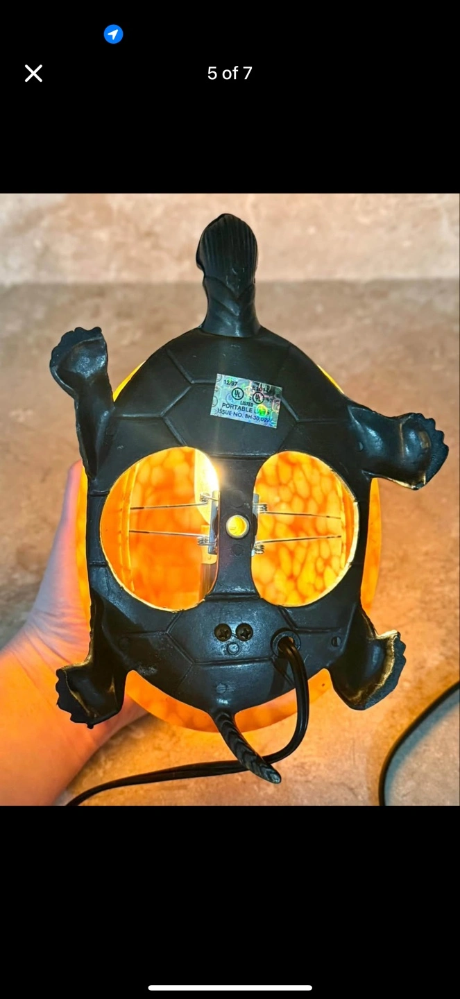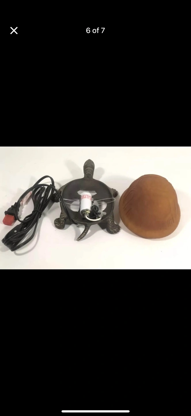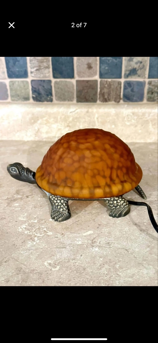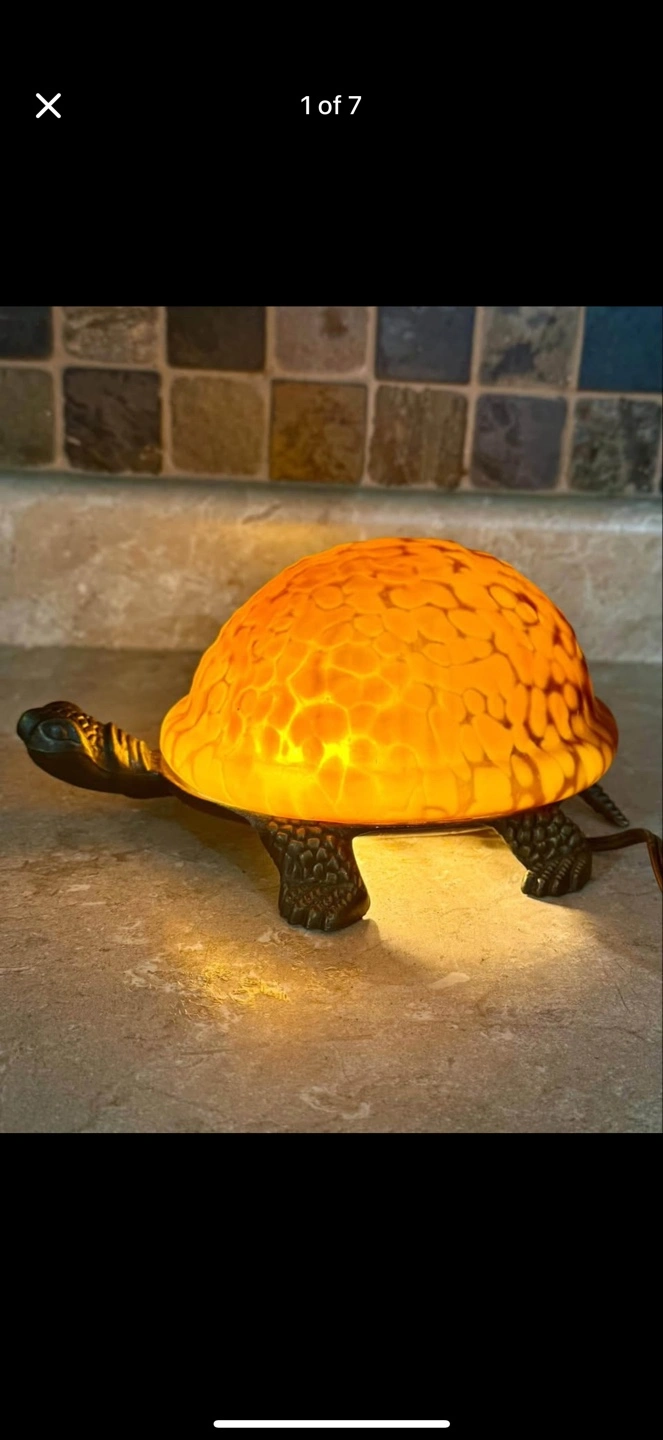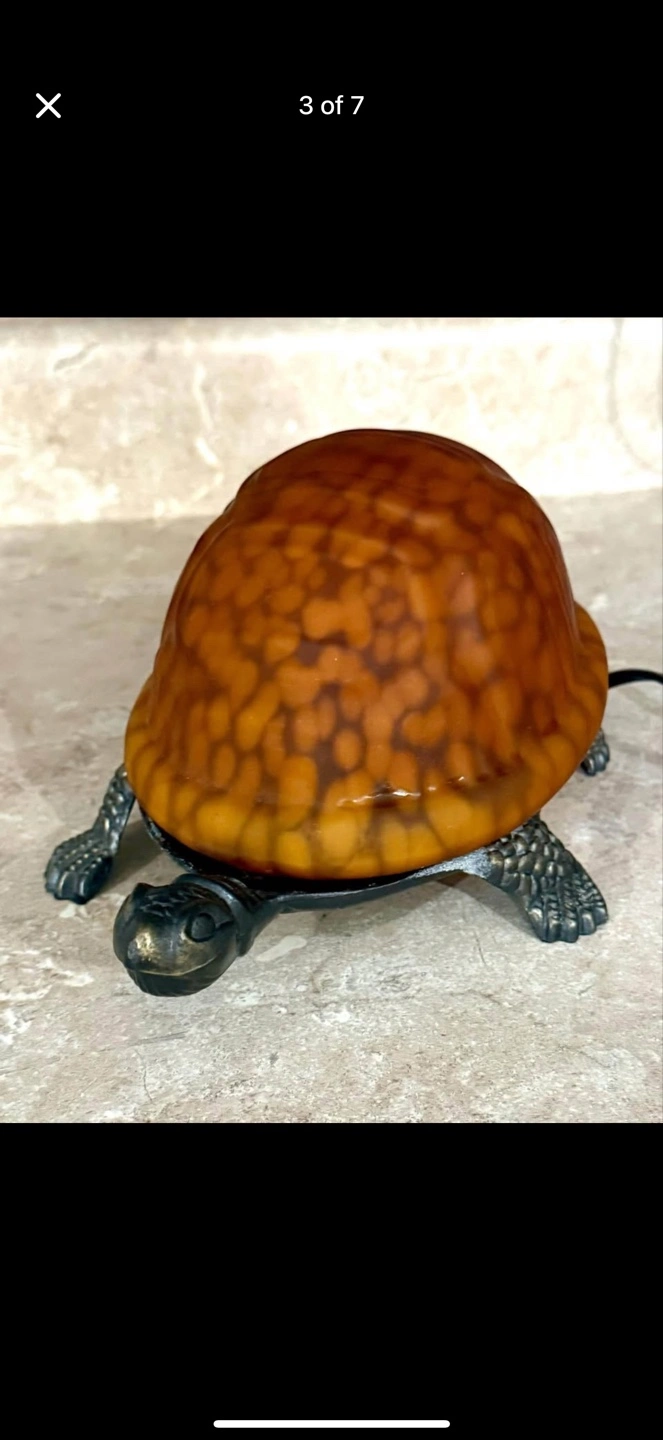 Vintage Turtle Lamp Amber Glass Shell Bronze Lamp Night Light Tiffany Style.