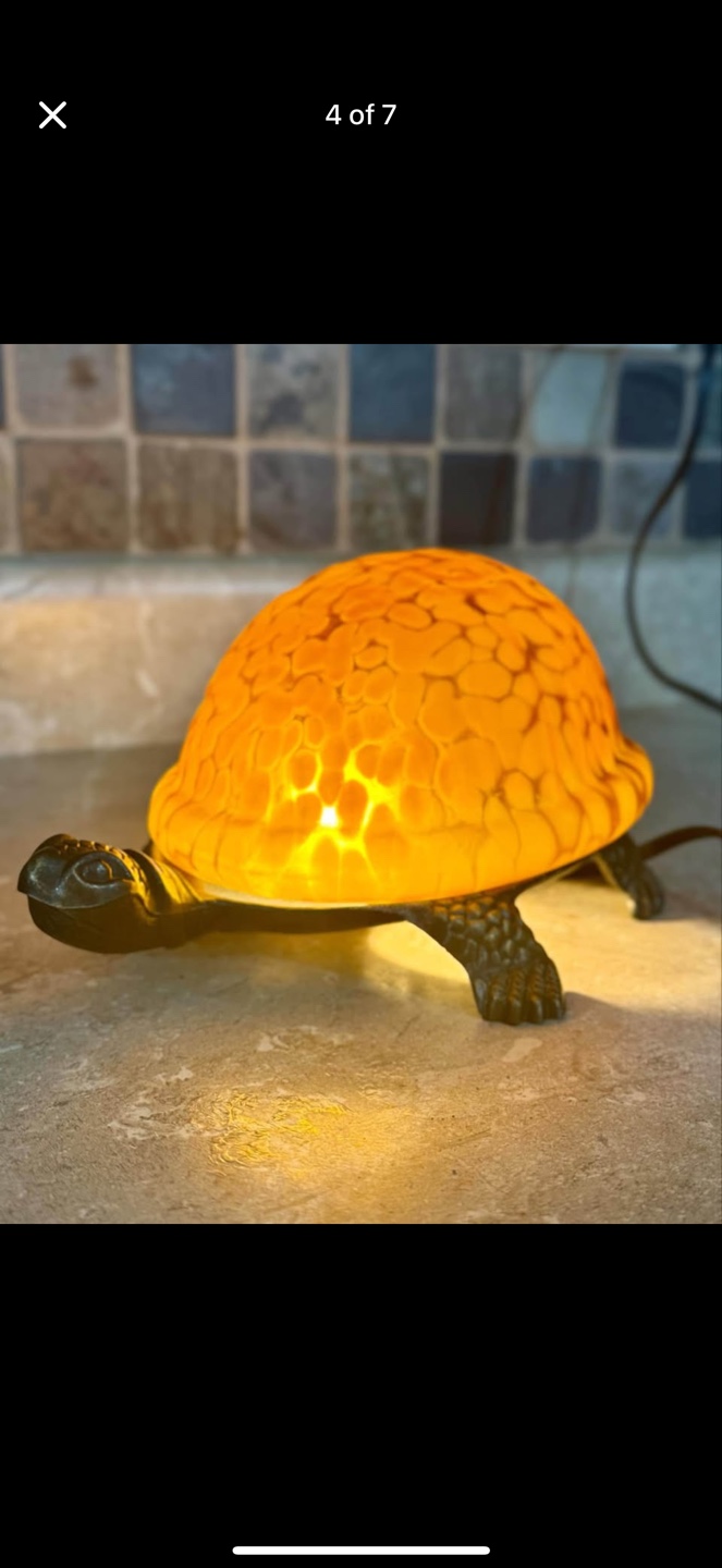 Vintage Turtle Lamp Amber Glass Shell Bronze Lamp Night Light Tiffany Style.